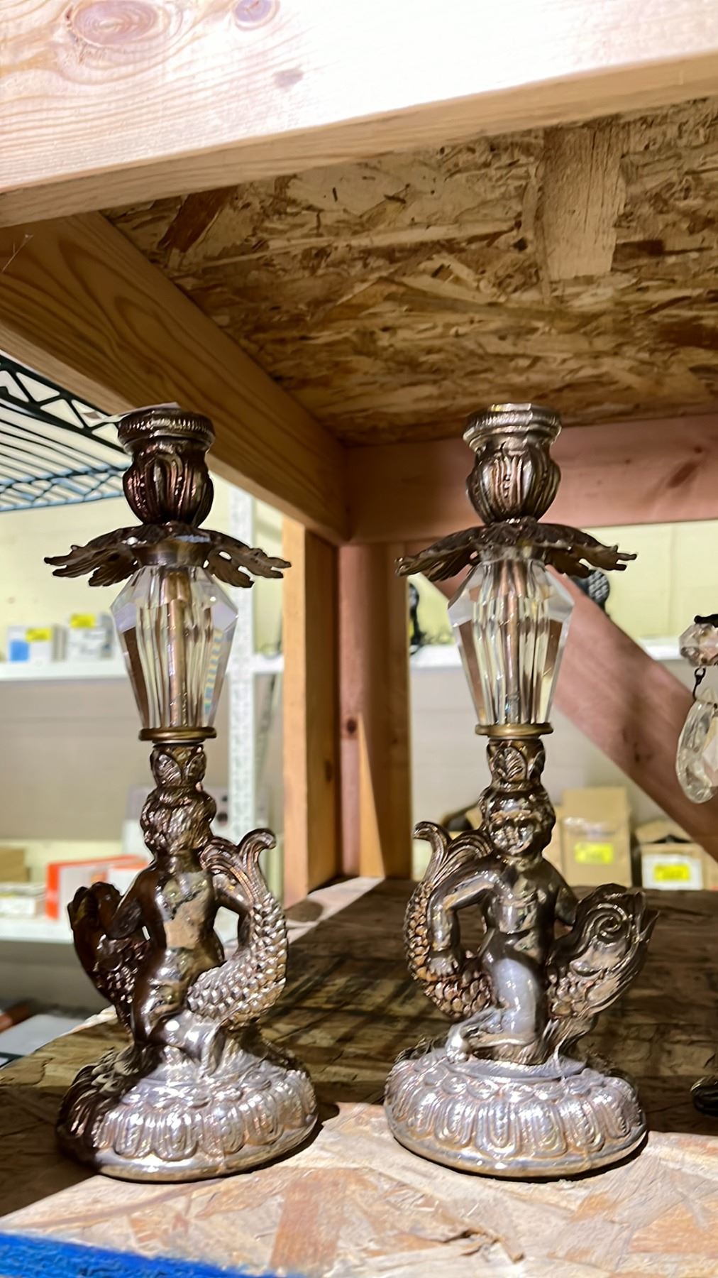 LOT OF ASSORTED CANDLE HOLDERS & MILK CARAFE