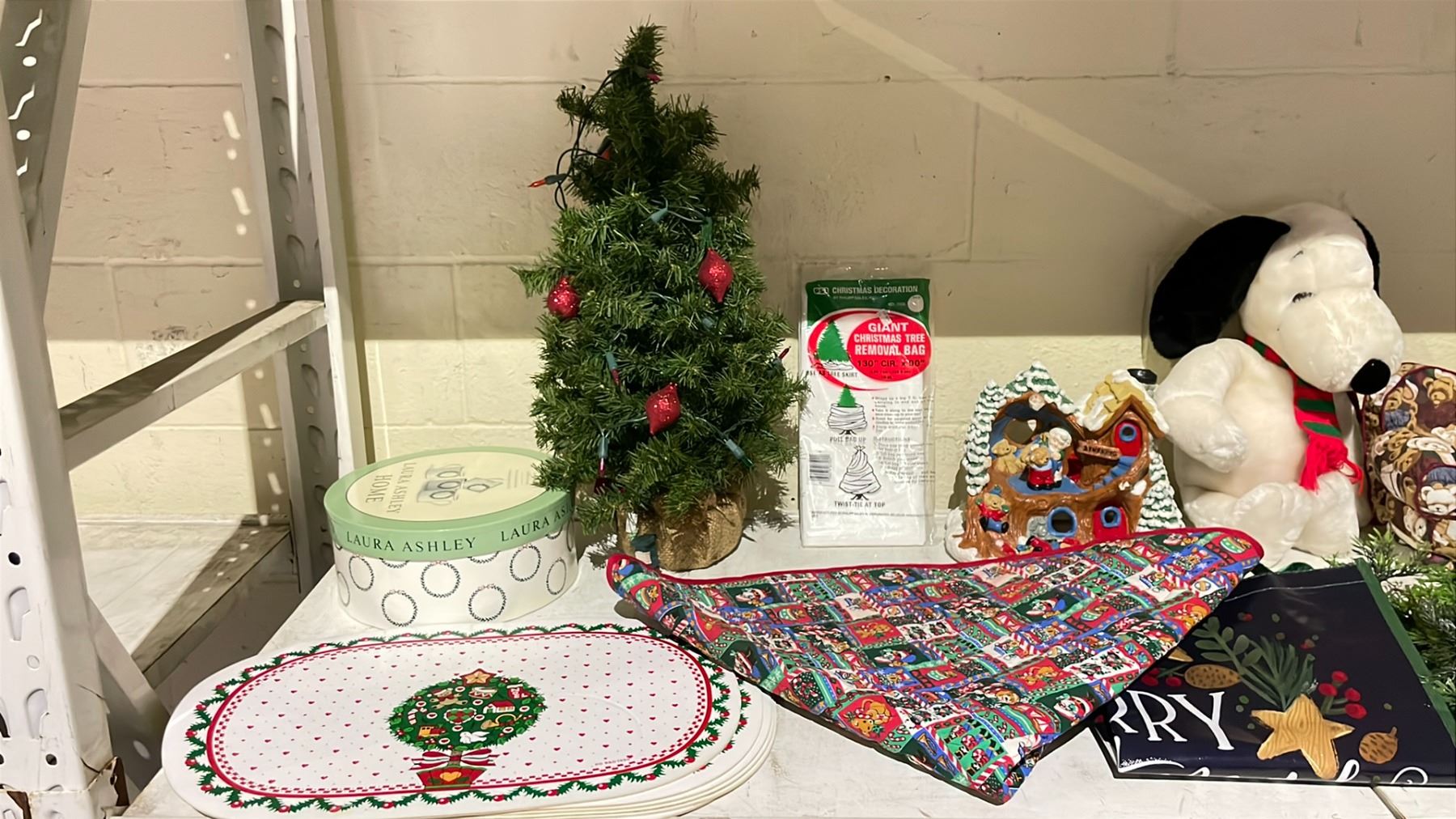 LOT OF ASSORTED CHRISTMAS DECOR INCLUDING; MUGS, TREE, ACCESSORIES & MORE