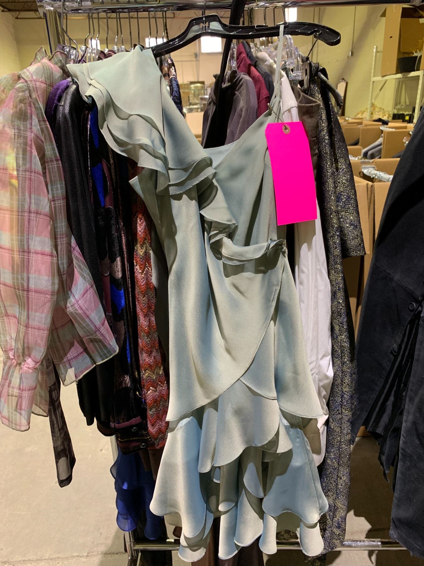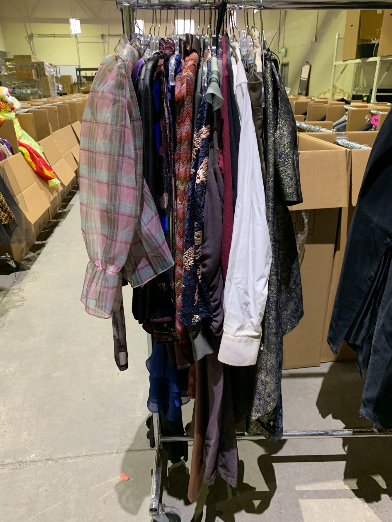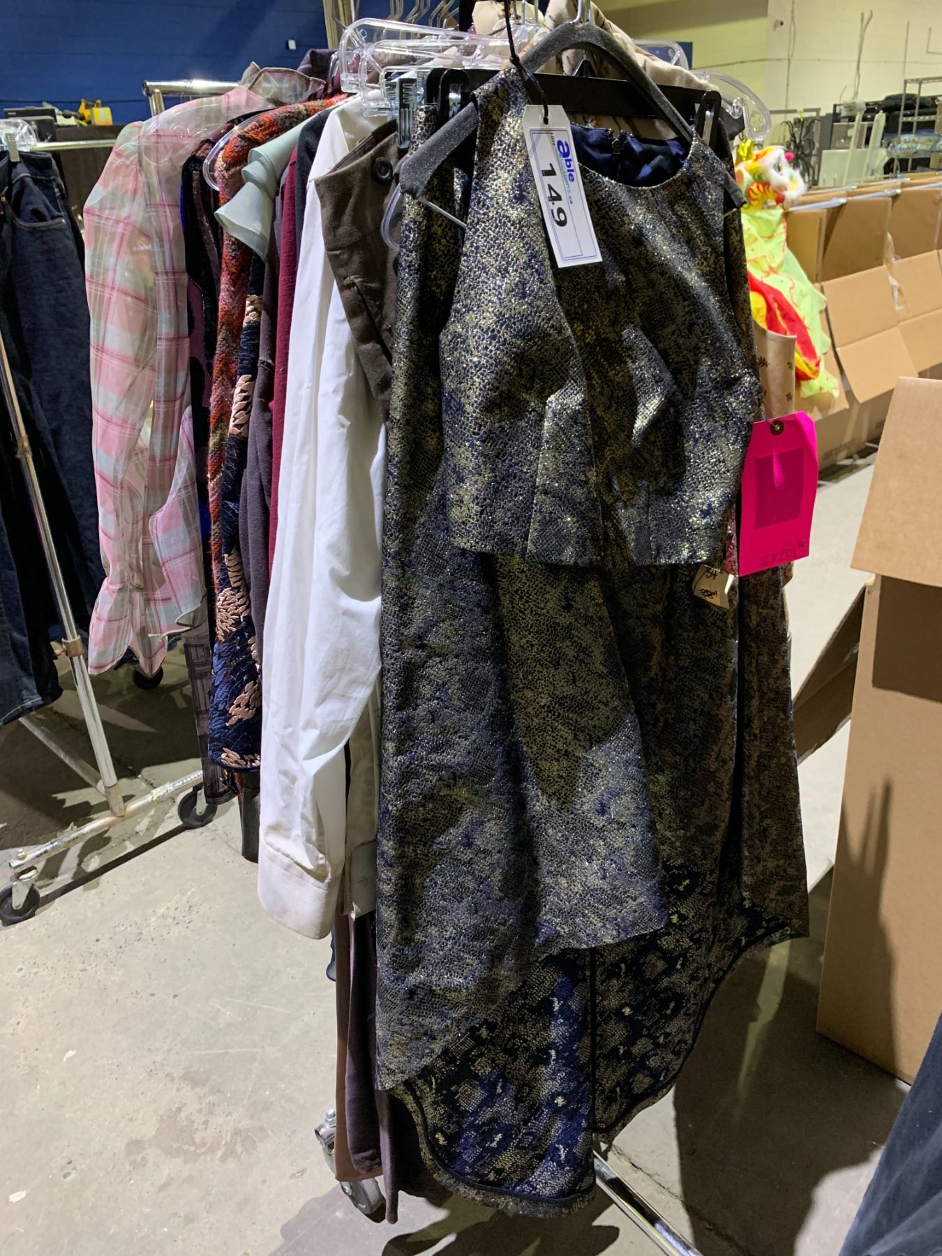 LOT OF ASSORTED CLOTHING INCLUDING; PANTS, DRESSES, SHEER TOPS, SWEATERS & MORE