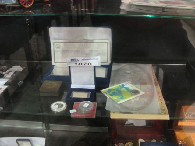 LOT OF ASSORTED COLLECTORS COINS, SILVER BANK NOTE, AND TOKENS