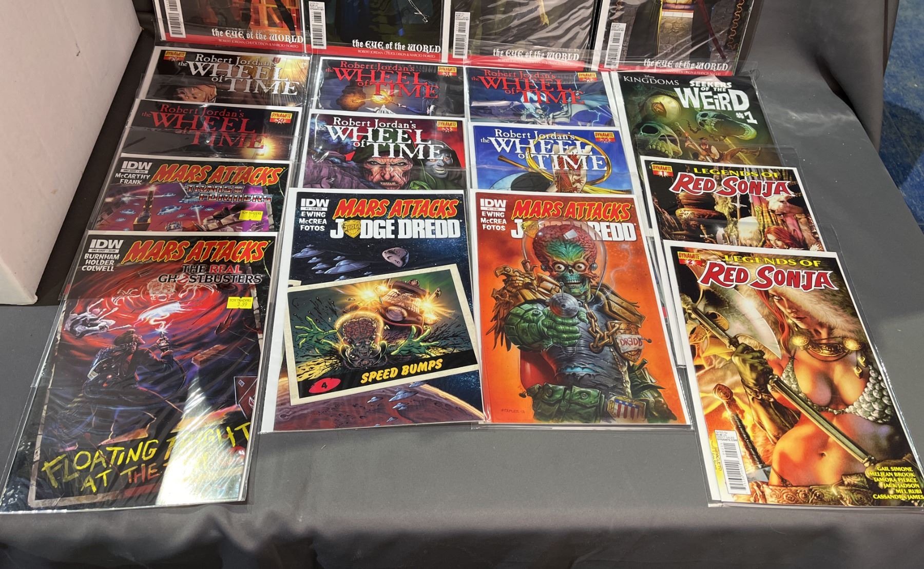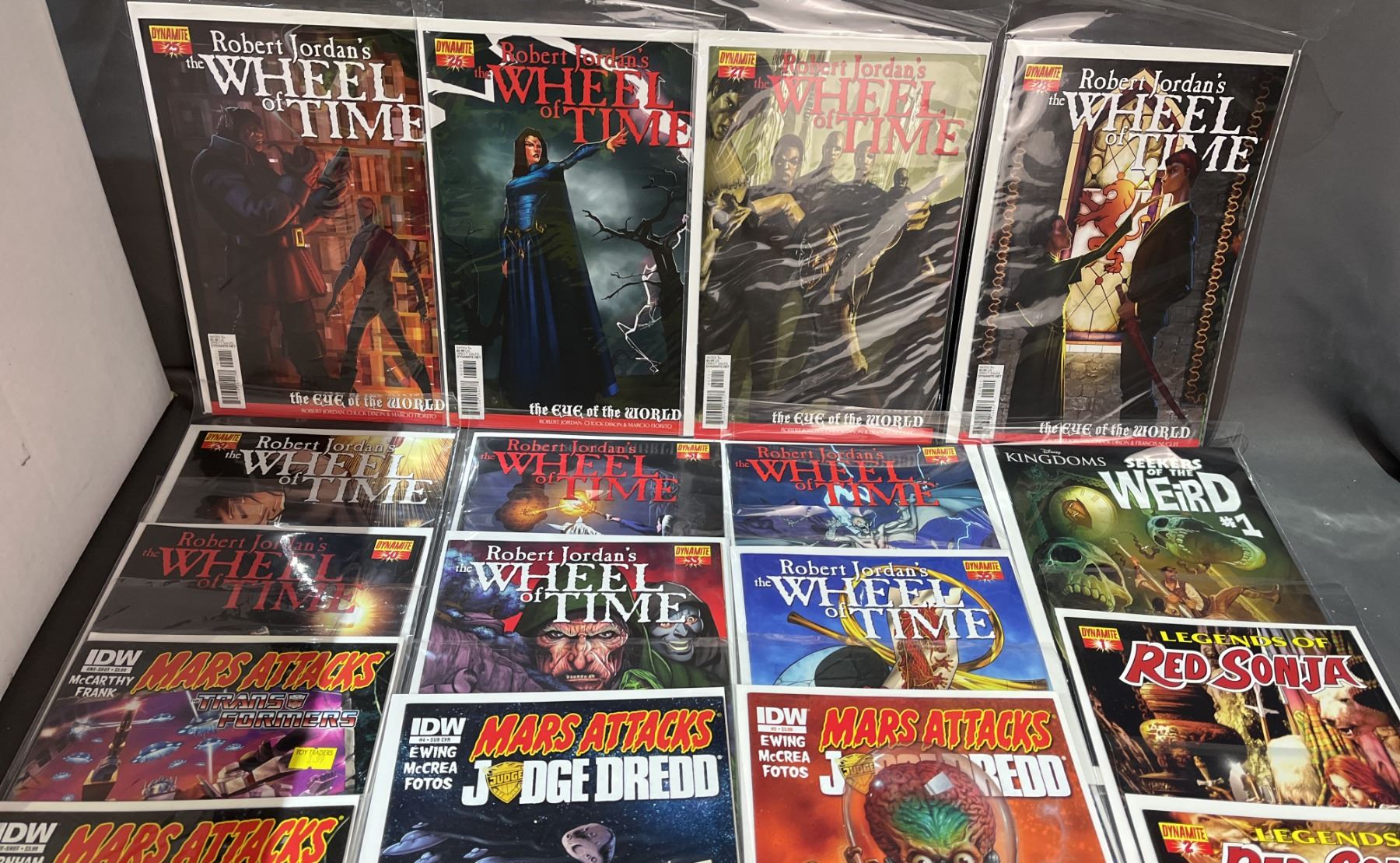 LOT OF ASSORTED COMIC BOOKS INCLUDING; GREEN ARROW, THE WHEEL OF TIME, MARS ATTACKS & MORE
