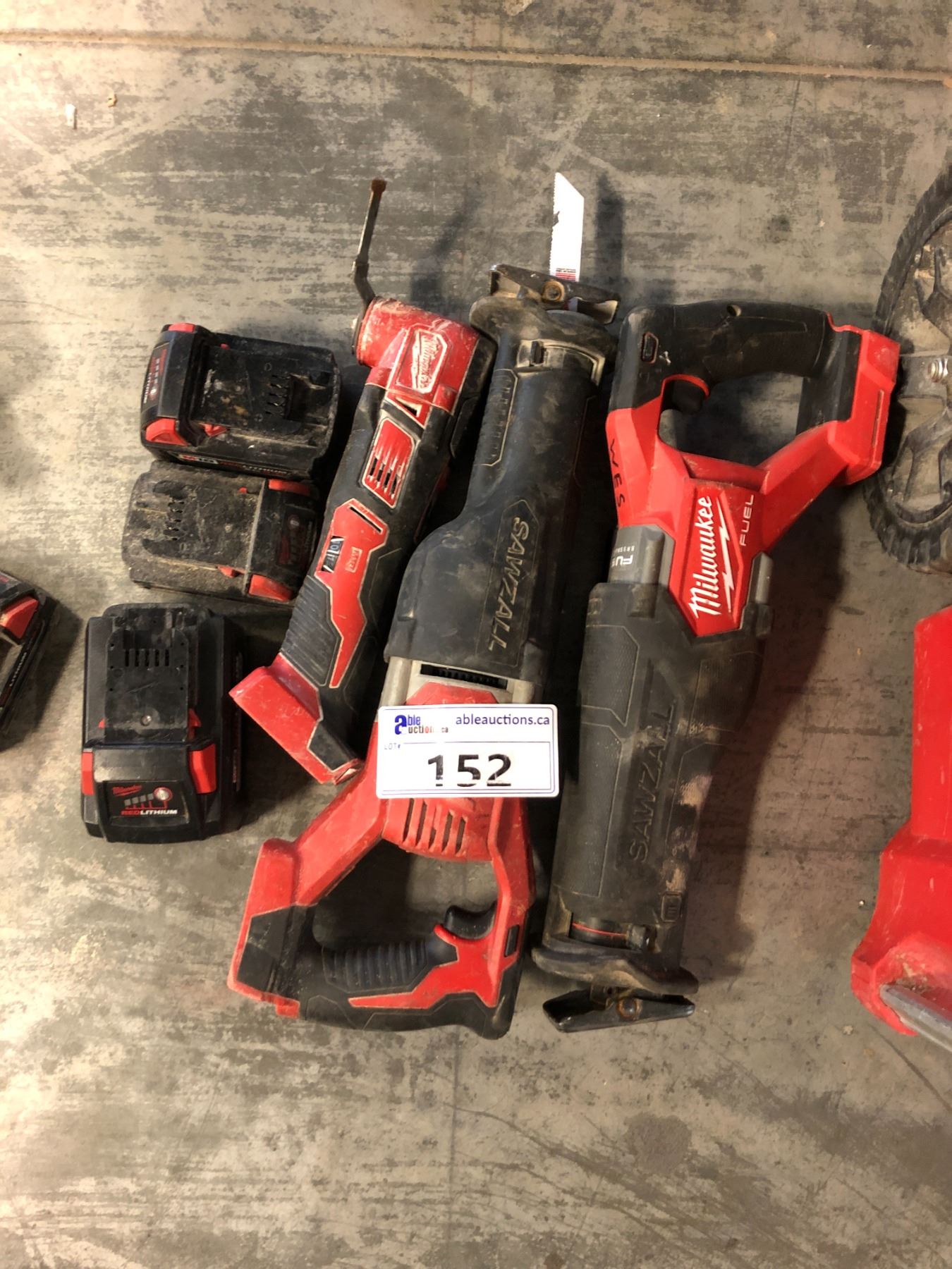 LOT OF ASSORTED CORDLESS MILWAUKEE POWER TOOLS INCLUDING 2 SAWZALLS, OSCILLATING MULTI TOOL, AND 3 BATTERIES