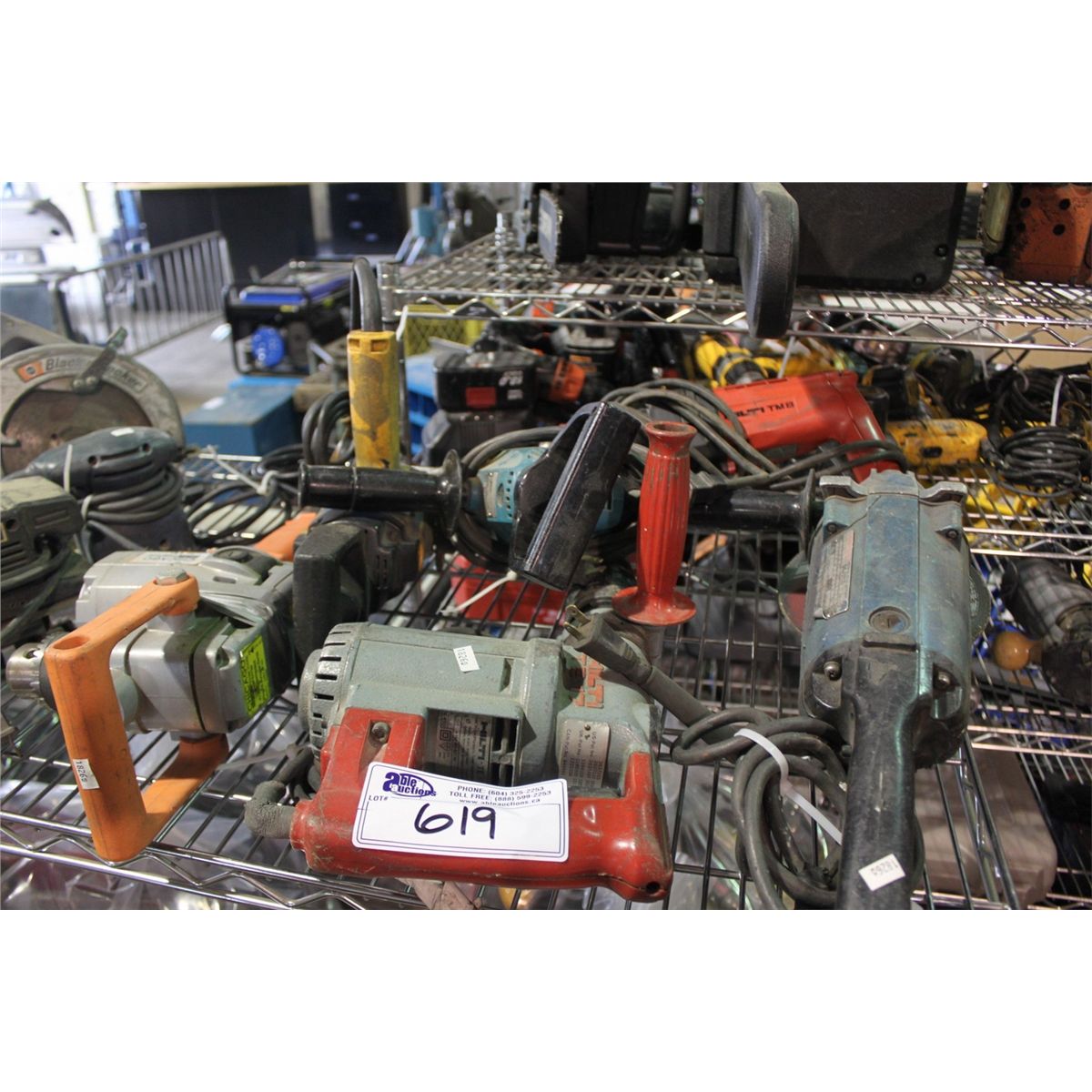 LOT OF ASSORTED DRILLS & POWER TOOLS