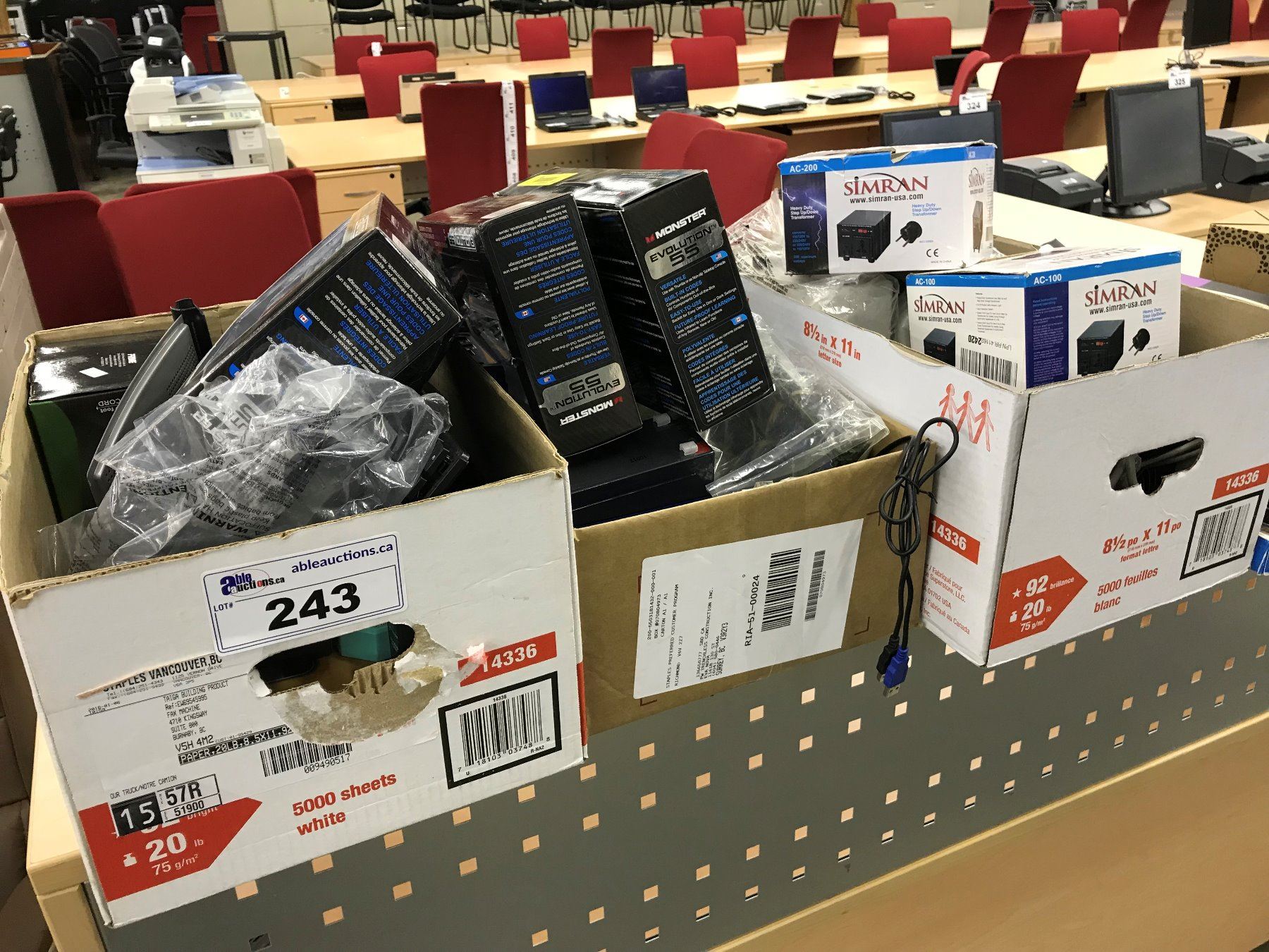 LOT OF ASSORTED ELECTRONICS AND ACCESSORIES INC. KEYBOARD COVERS, REMOTE CONTROLS, POWER TRANSFORMERS AND MORE