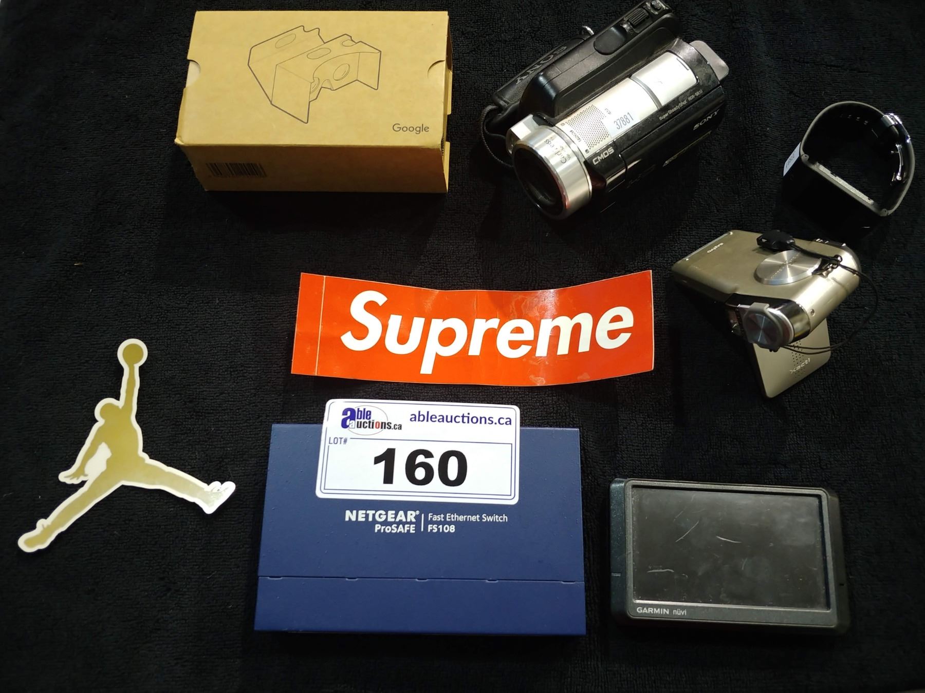 LOT OF ASSORTED ELECTRONICS INCLUDING SONY CAMCORDER, SAMSUNG WATCH, GOOGLE VR AND MORE