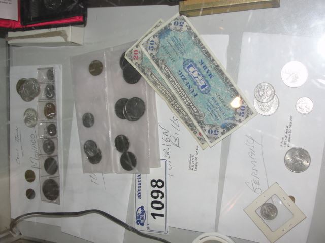 LOT OF ASSORTED FOREIGN MONEY; COINS AND BANK NOTES. MONICO, ITALY, GERMANY