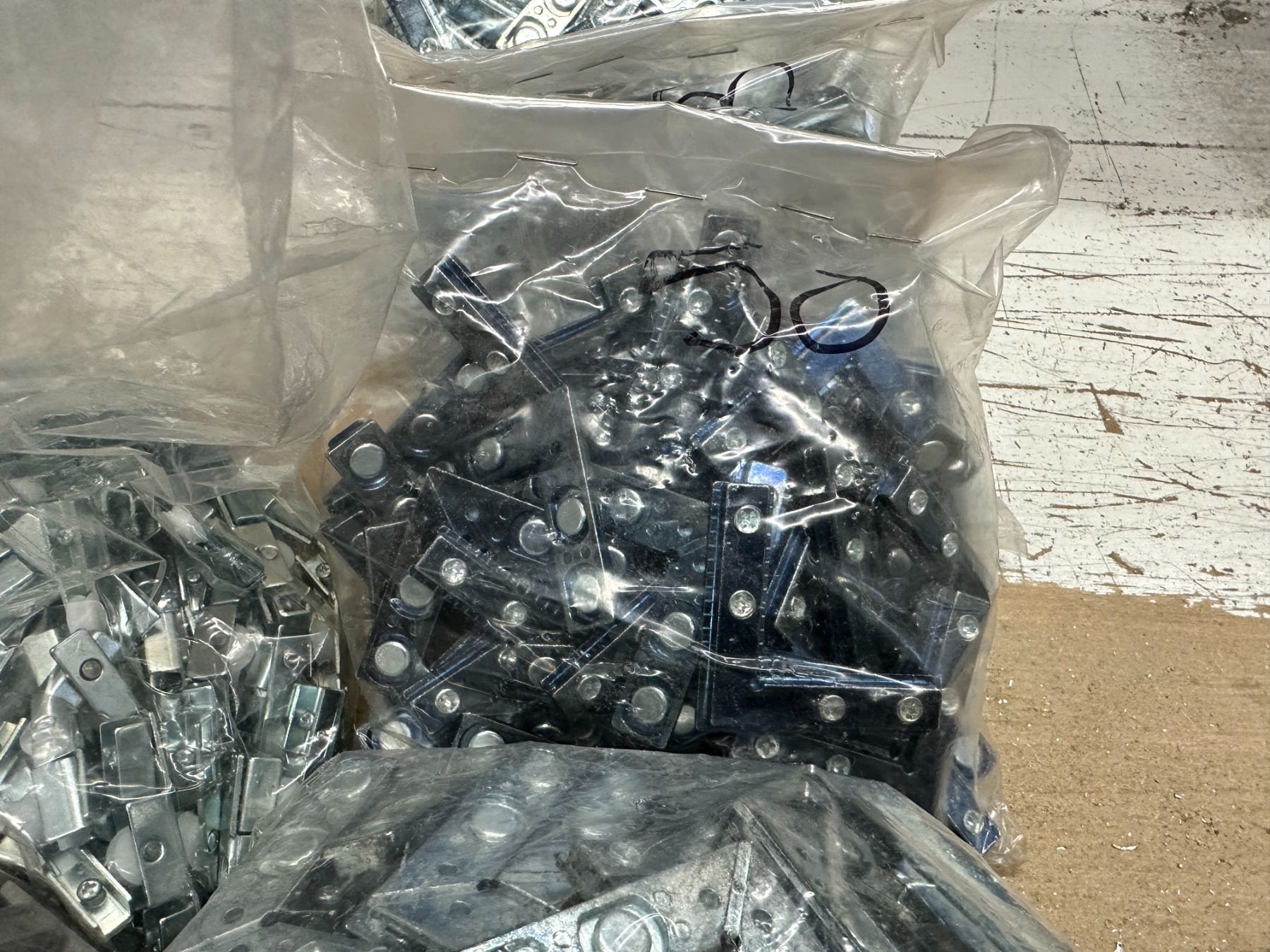 LOT OF ASSORTED HARDWARE INCLUDING ASSORTED CABINET LOCKS, PLASTIC SNAP CAPS, ANGLE MAGNETS, AND SLIDER WHEELS