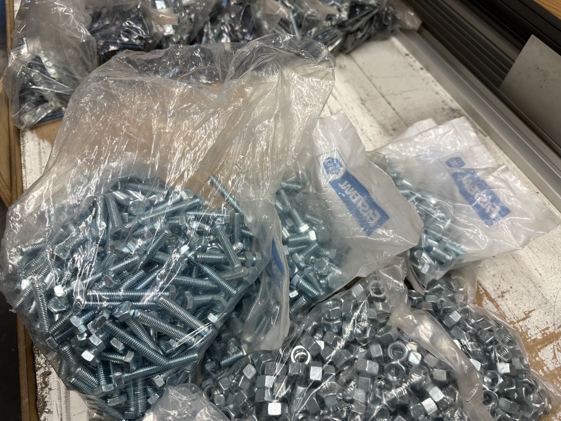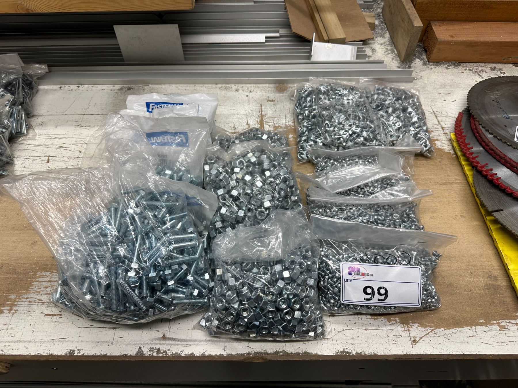 LOT OF ASSORTED HARDWARE INCLUDING NUTS, BOLTS, SCREWS AND SCREW CLAMPS