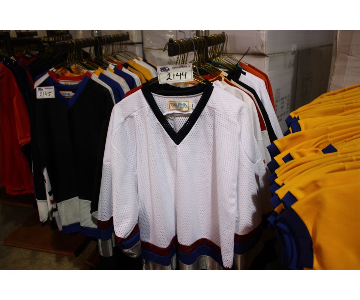 LOT OF ASSORTED HOCKEY TEAM JERSEYS (RACK NOT INCLUDED)