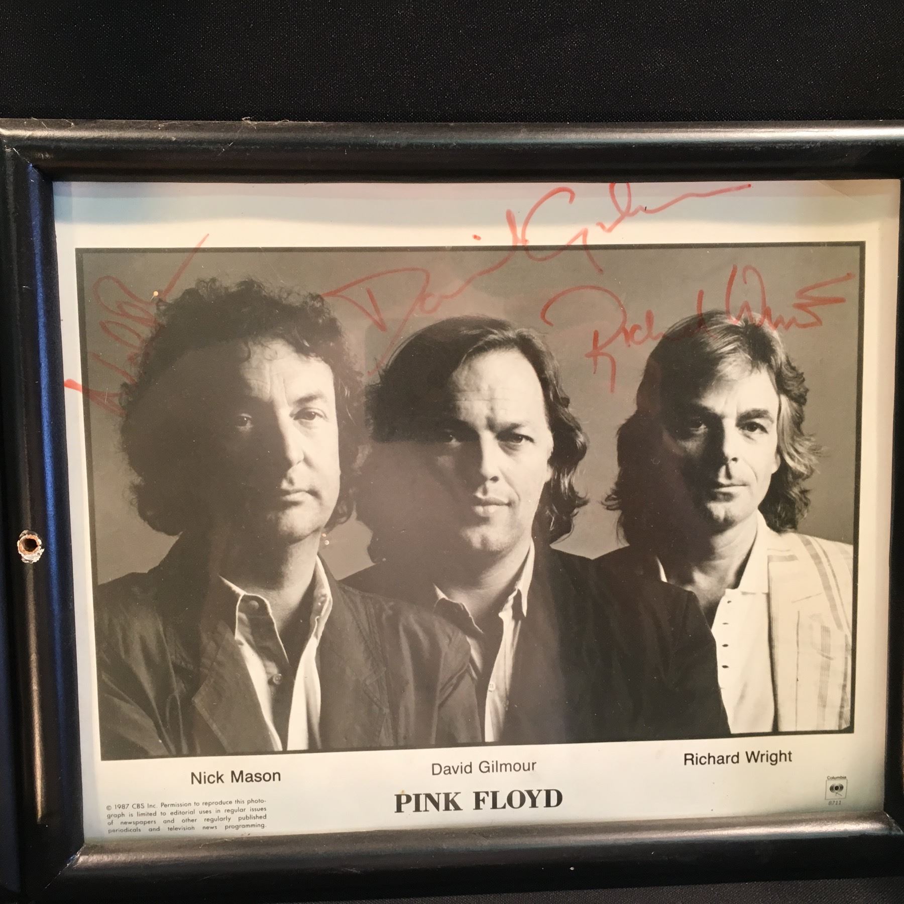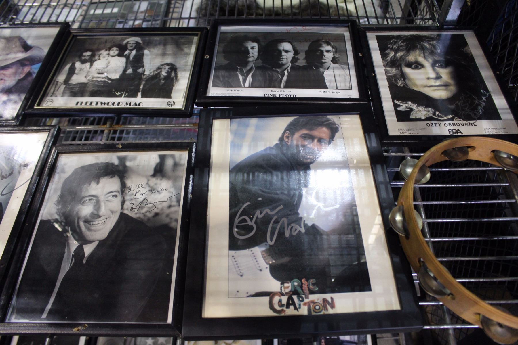 LOT OF ASSORTED ICONIC BAND AUTOGRAPHED POSTERS AND PROGRAMS, FRAMED AND UNFRAMED, INCLUDING PINK FLOYD, HEART, FLEETWOOD MAC, ROD STEWART, ERIC CLAPTON AND MORE, AS WELL AS AUTOGRAPHED KENNY ROGERS TAMBOURINE