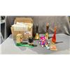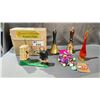 LOT OF ASSORTED ITEMS INCLUDING; BELLS, VASE, SERMONS IN CHEMISTRY KIT, CLOWN FIGURE & MORE