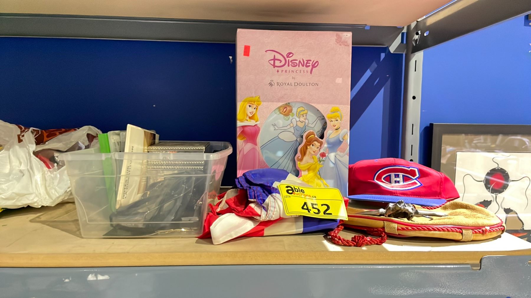 LOT OF ASSORTED ITEMS INCLUDING; DISNEY PRINCESS BY ROYAL DOULTON CINDERELLA BOWL, MUG AND PLATE, MONTREAL CANADIENS HAT, AND MORE