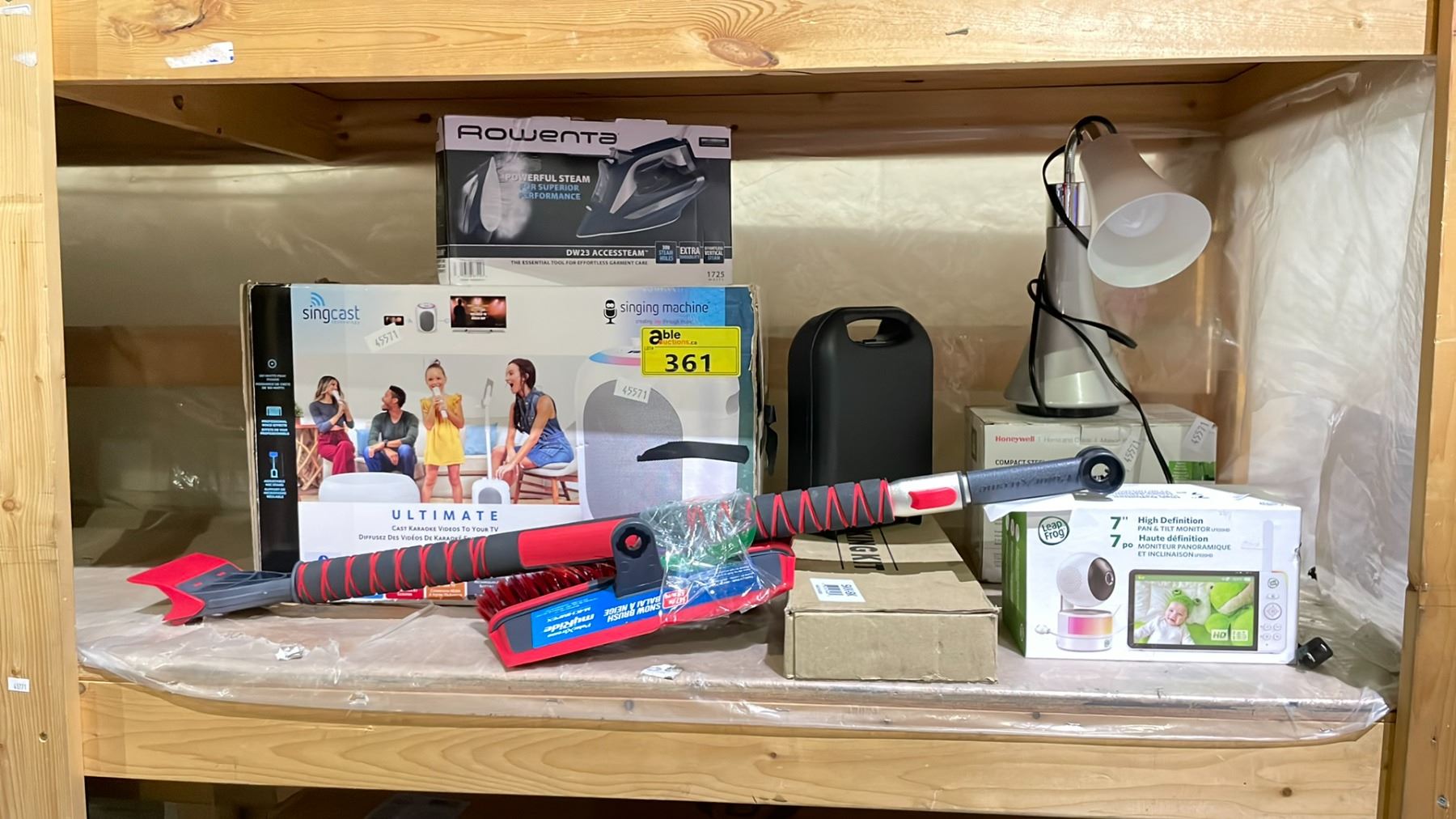 LOT OF ASSORTED ITEMS INCLUDING; SINGCAST ULTIMATE KARAOKE, STEAM IRON, DESK LAMP & MORE (UNKNOWN