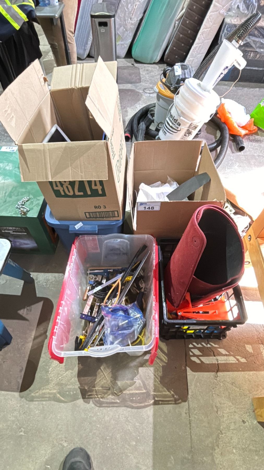 LOT OF ASSORTED ITEMS INCLUDING; SOLAR PANEL, CONES, CLAMPS AND MORE