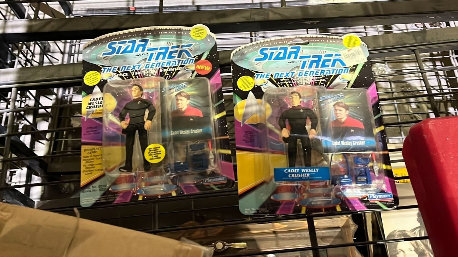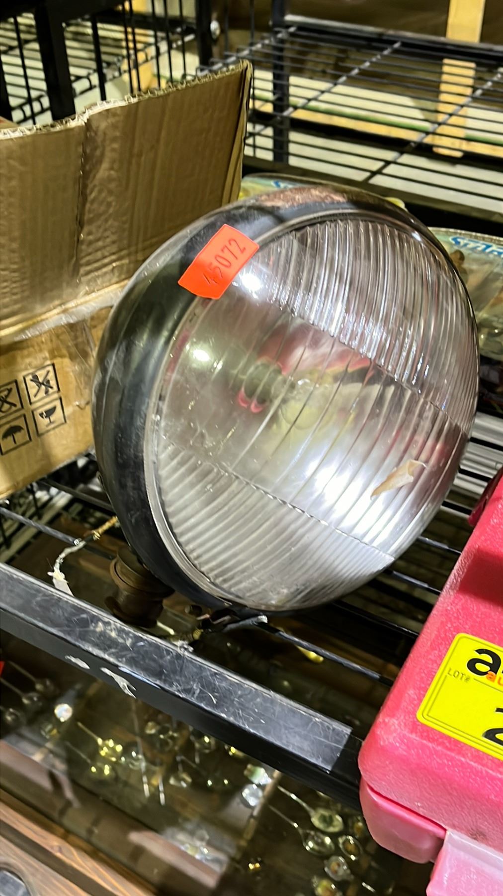 LOT OF ASSORTED ITEMS INCLUDING; VINTAGE HEADLIGHT, STAR TREK FIGURES, MONITOR MOUNT & MORE
