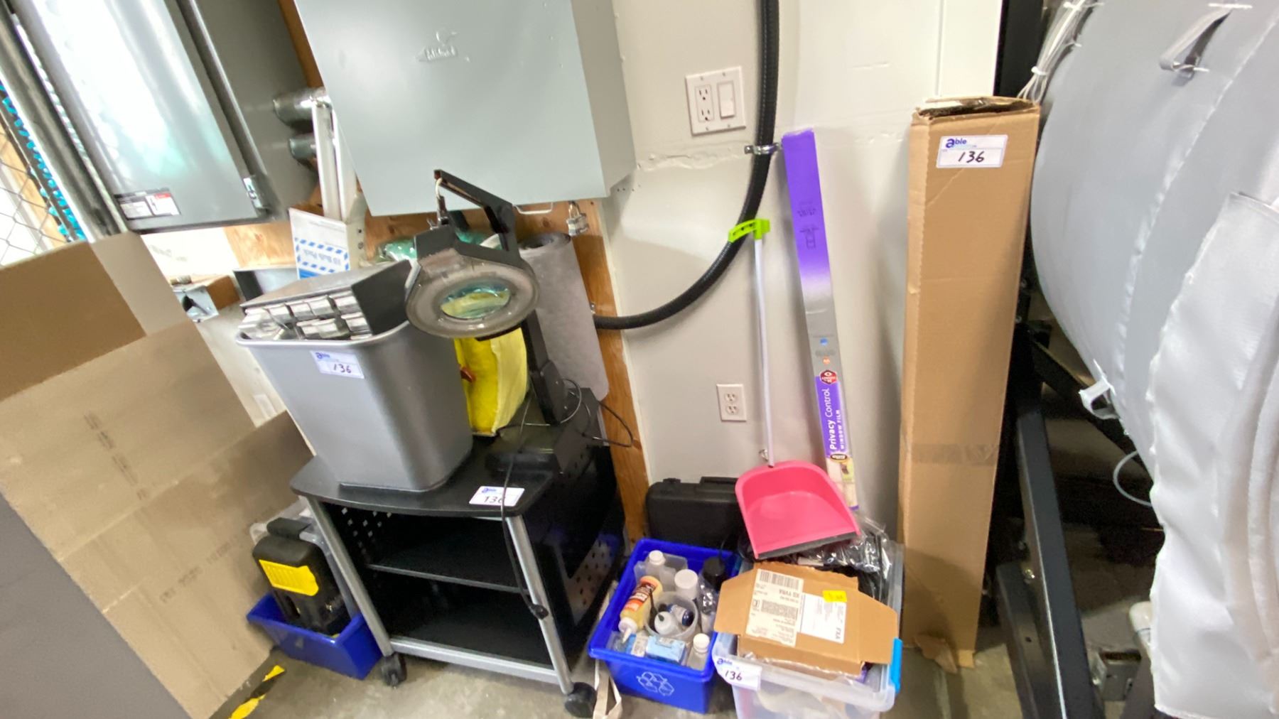 LOT OF ASSORTED ITEMS; SPILL CLOTHS, HARDWARE, PARTS BIN AND MORE