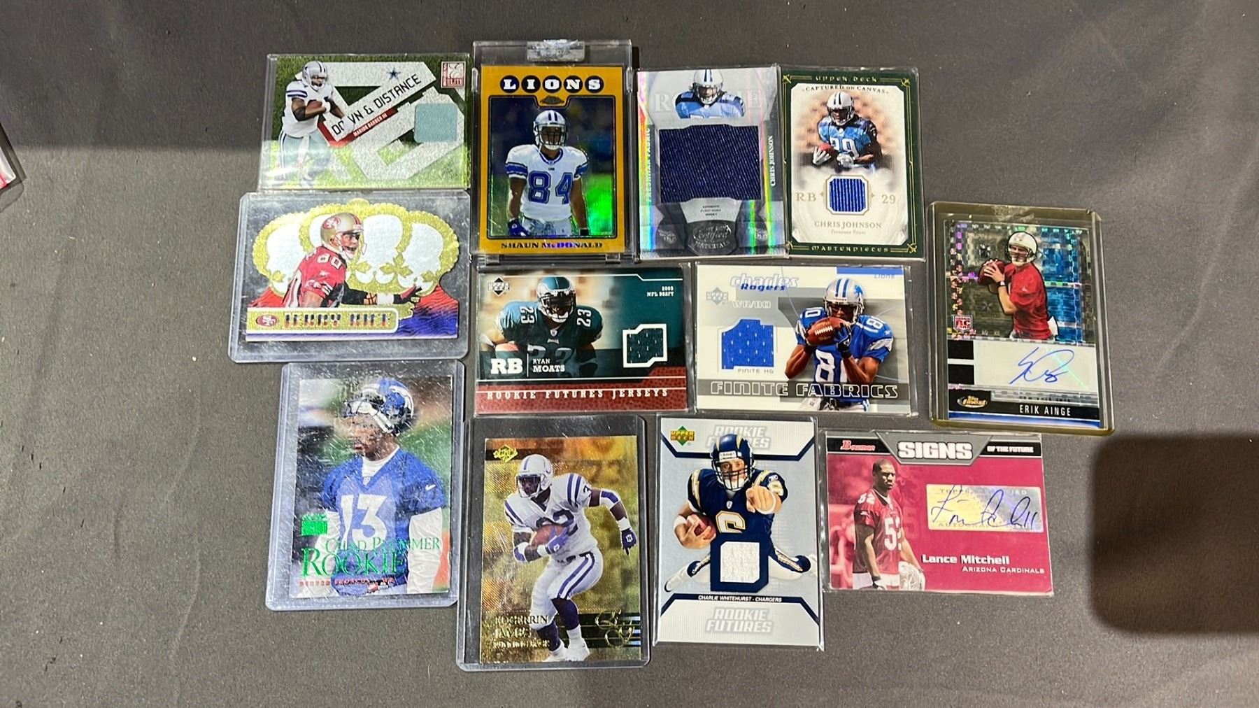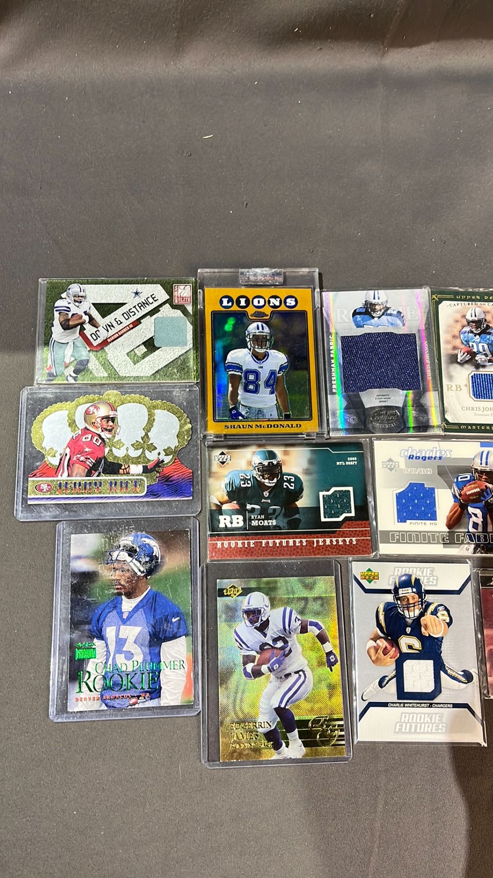 LOT OF ASSORTED JERSEY, AUTOGRAPH, ROOKIE & MORE FOOTBALL CARDS INCLUDING; JERRY RICE, SHAUN