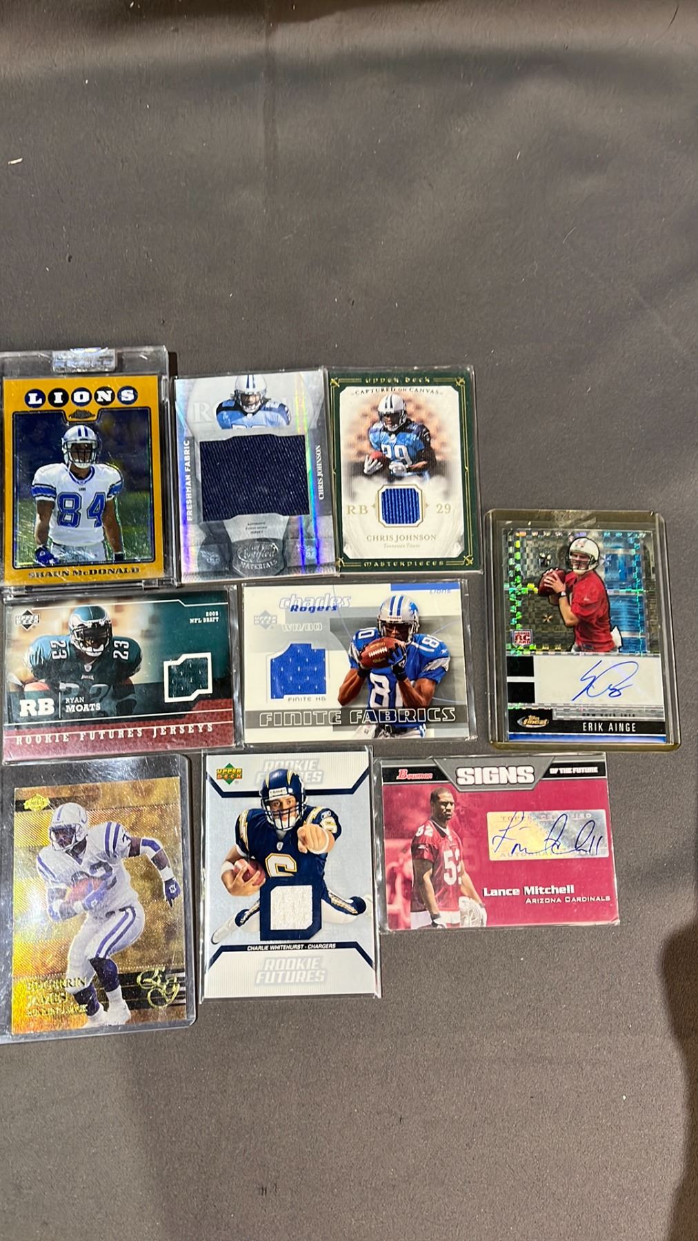LOT OF ASSORTED JERSEY, AUTOGRAPH, ROOKIE & MORE FOOTBALL CARDS INCLUDING; JERRY RICE, SHAUN MCDONALD, ERIK AINGE & MORE