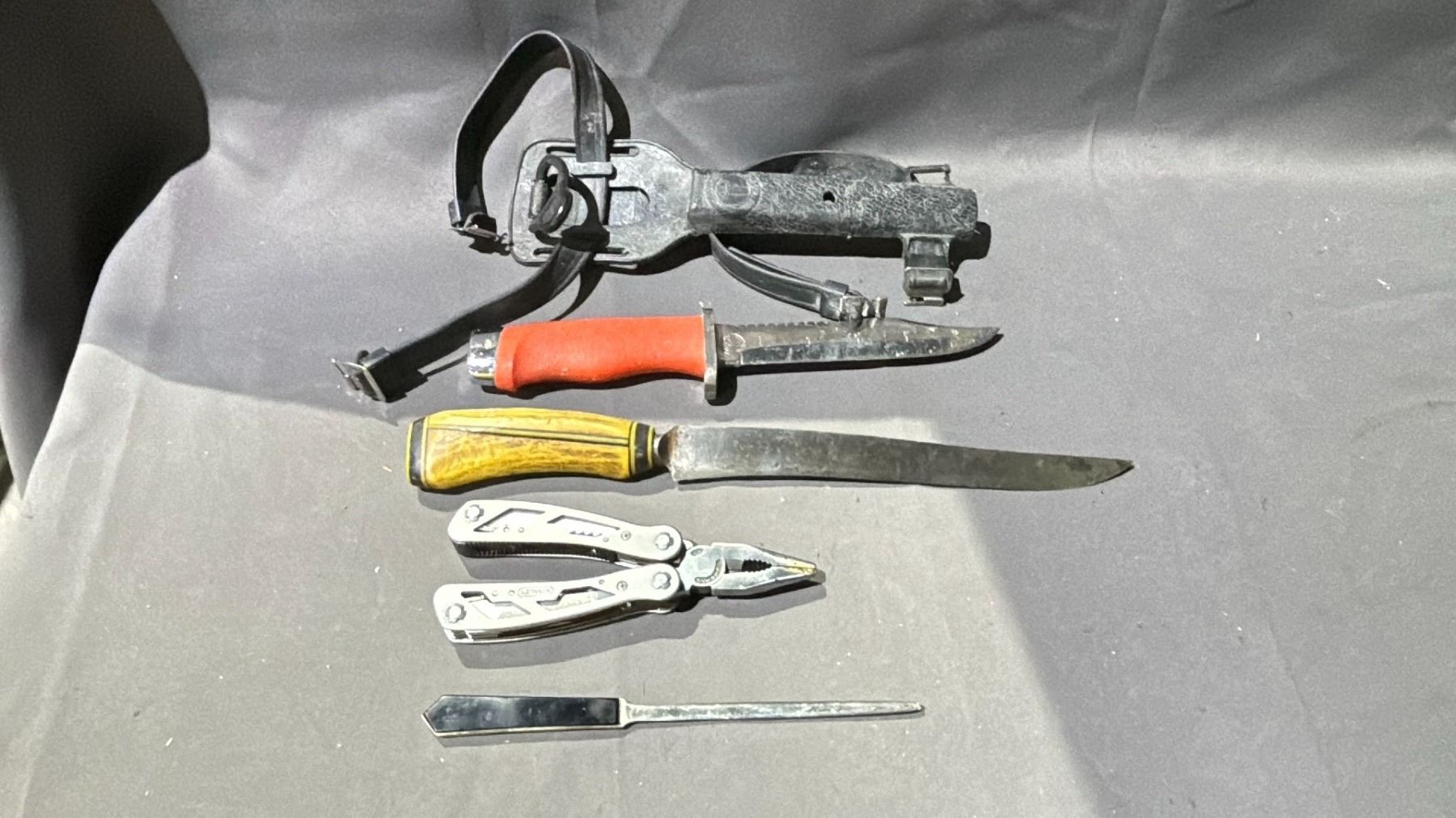 LOT OF ASSORTED KNIVES & MULTITOOL INCLUDING; STANLEY, TAYLORBROS, AQUA LUNGS & MORE