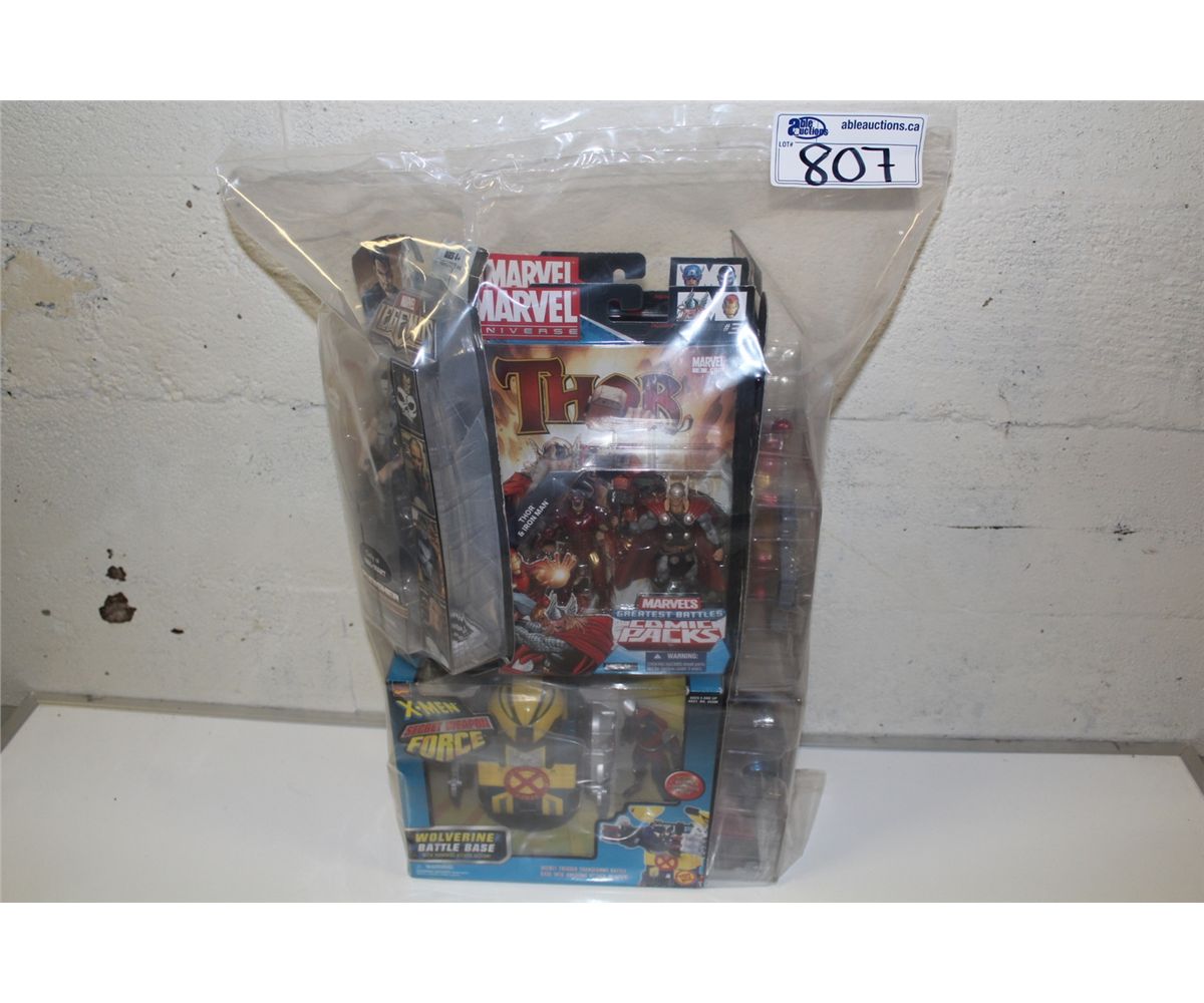 LOT OF ASSORTED MARVEL COLLECTOR ACTION FIGRUES, NEW IN BOX INCLUDES, MARVEL LEGENDS, X-MEN FORCE, THOR, PUNISHER, ETC.