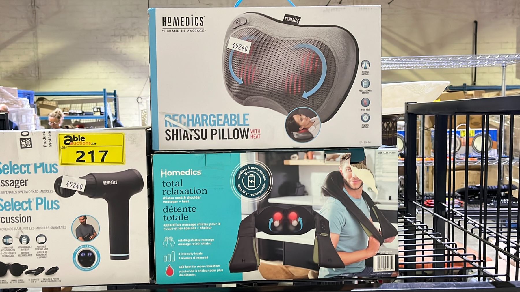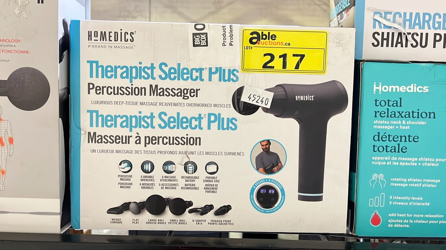 LOT OF ASSORTED MASSAGERS INCLUDING; SHARPER IMAGE POWER PERCUSSION, HOMEDICS THERAPIST SELECT PLUS, HOMEDICS SHIATSU PILLOW & HOMEDICS TOTAL RELAXATION NECK & SHOULDER MASSAGER (MAY BE MISSING PIECES)