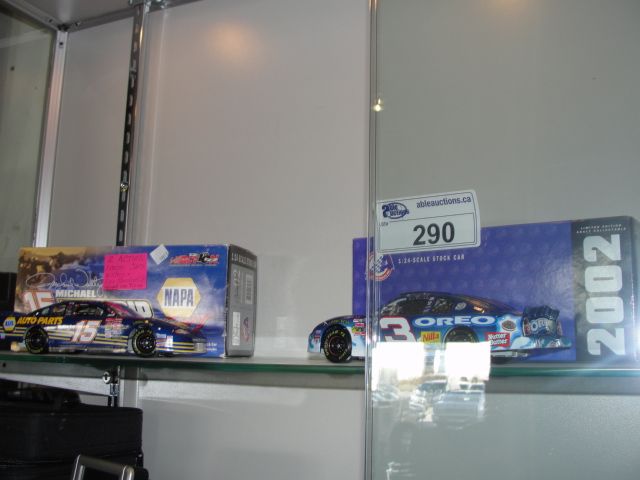 LOT OF ASSORTED NASCAR COLLECTABLES; 2 DIECAST METAL CARS, AND JEFF GORDON COLLECTION