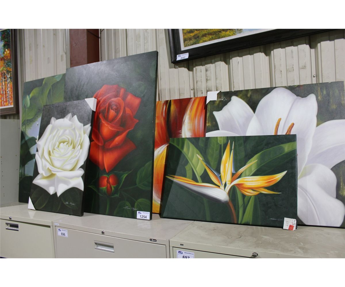 LOT OF ASSORTED OIL ON CANVAS FLOWER ARTWORK