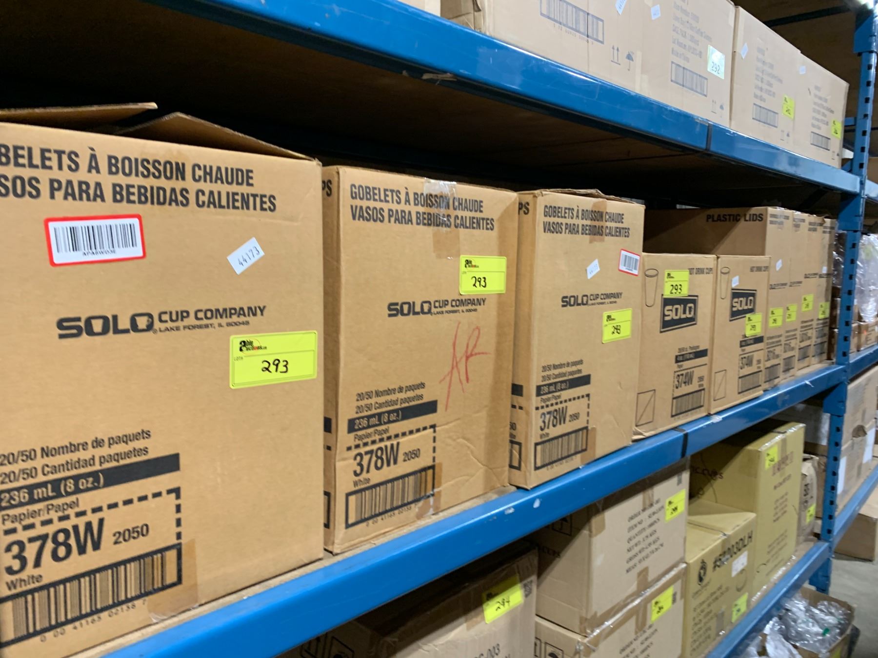 LOT OF ASSORTED PLASTIC LIDS, 8OZ & 4 OZ SOLO PAPER CUPS