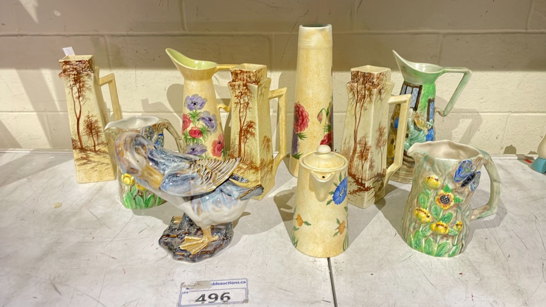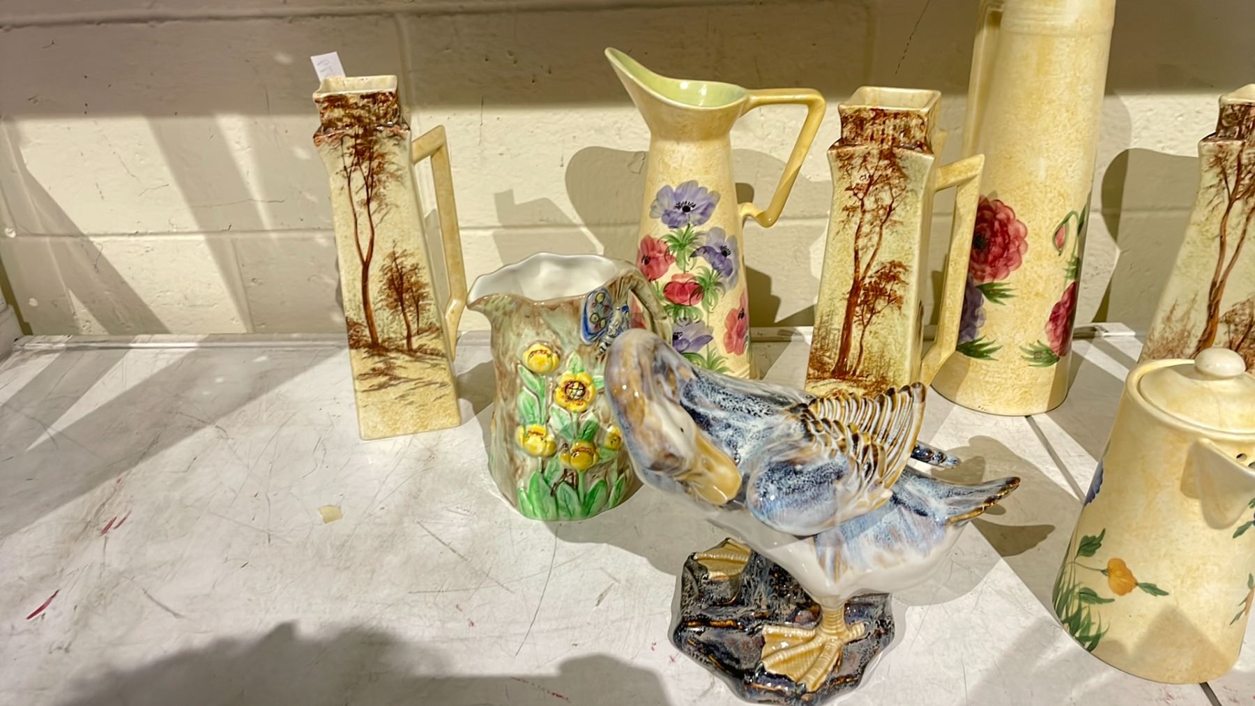 LOT OF ASSORTED RADFORD WATER JUGS, CERAMIC DUCK DECOR AND MORE
