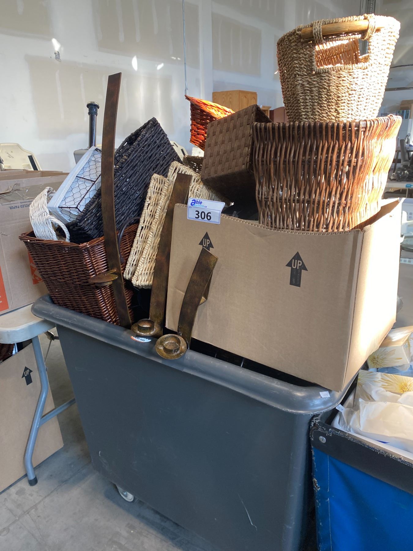 LOT OF ASSORTED RATTAN BASKETS - BIN NOT INCLUDED