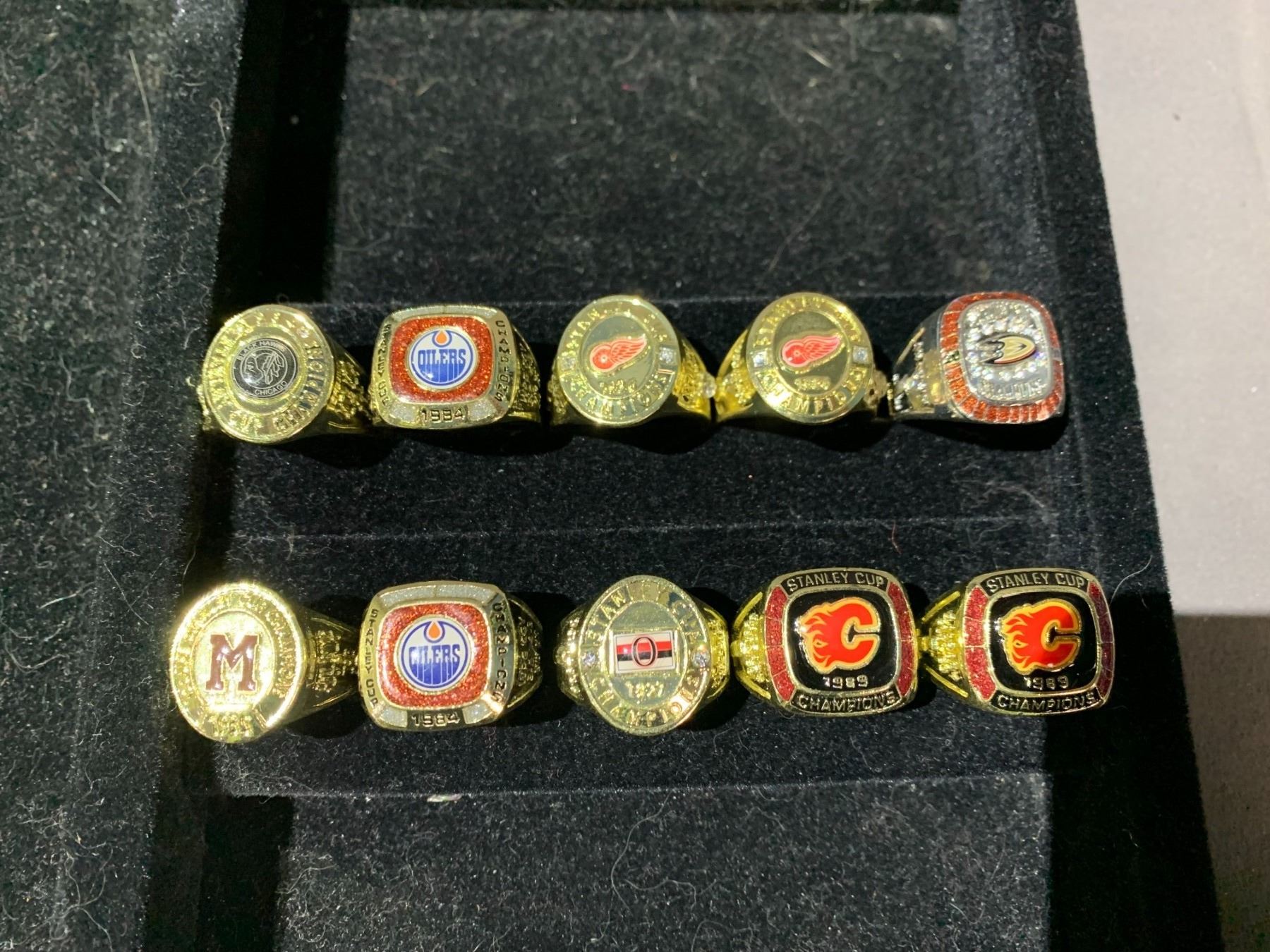 LOT OF ASSORTED REPRODUCTION CHAMPIONSHIP RINGS INCLUDING; DETROIT RED WINGS, EDMONTON OILERS, MONTREAL MAROONS & MORE