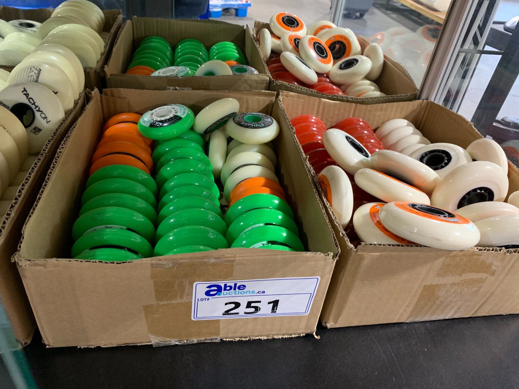 LOT OF ASSORTED ROLLER SKATE WHEELS IN VARIOUS SIZES & COLOURS