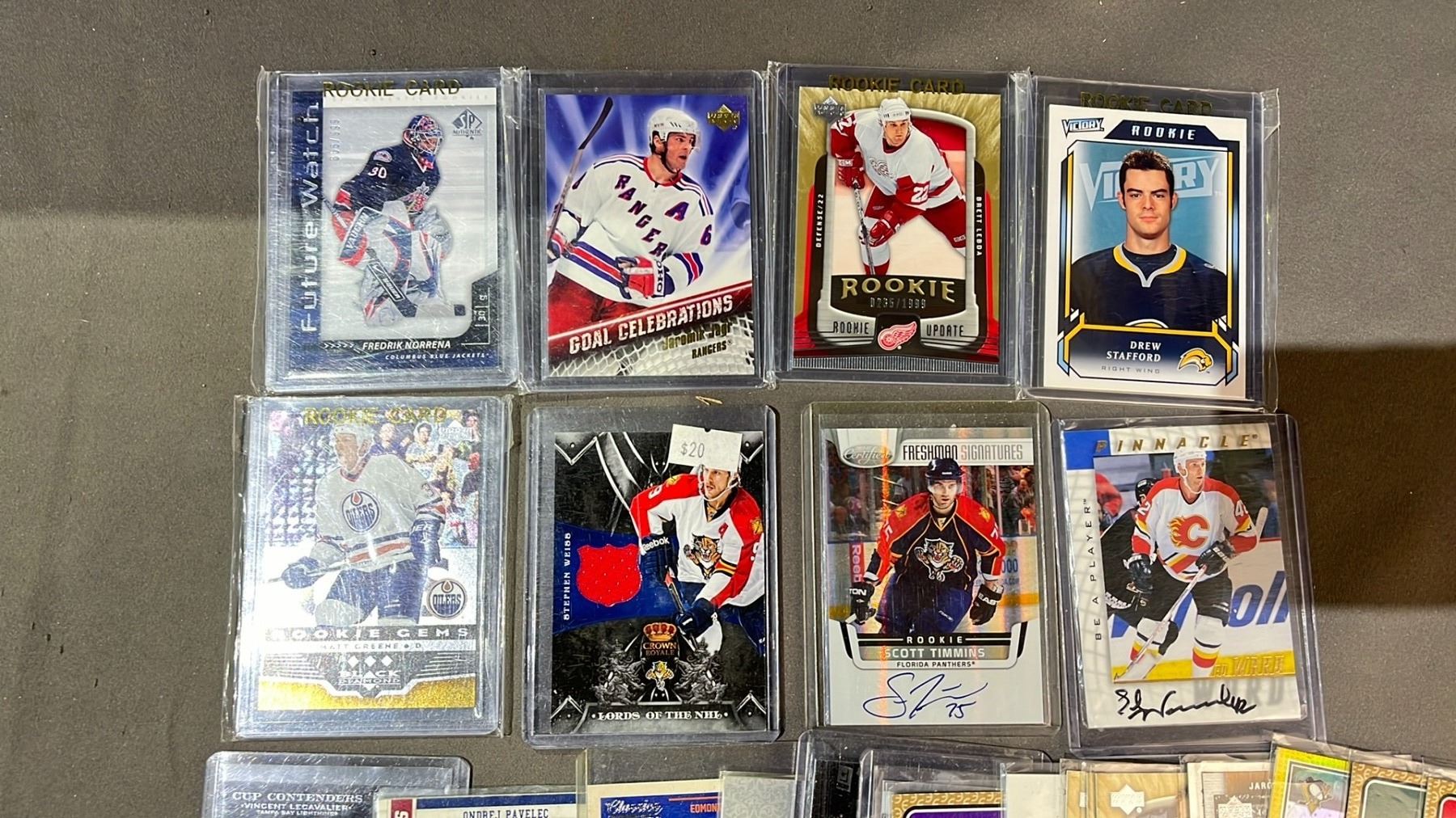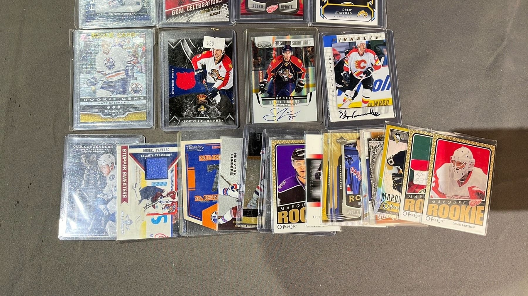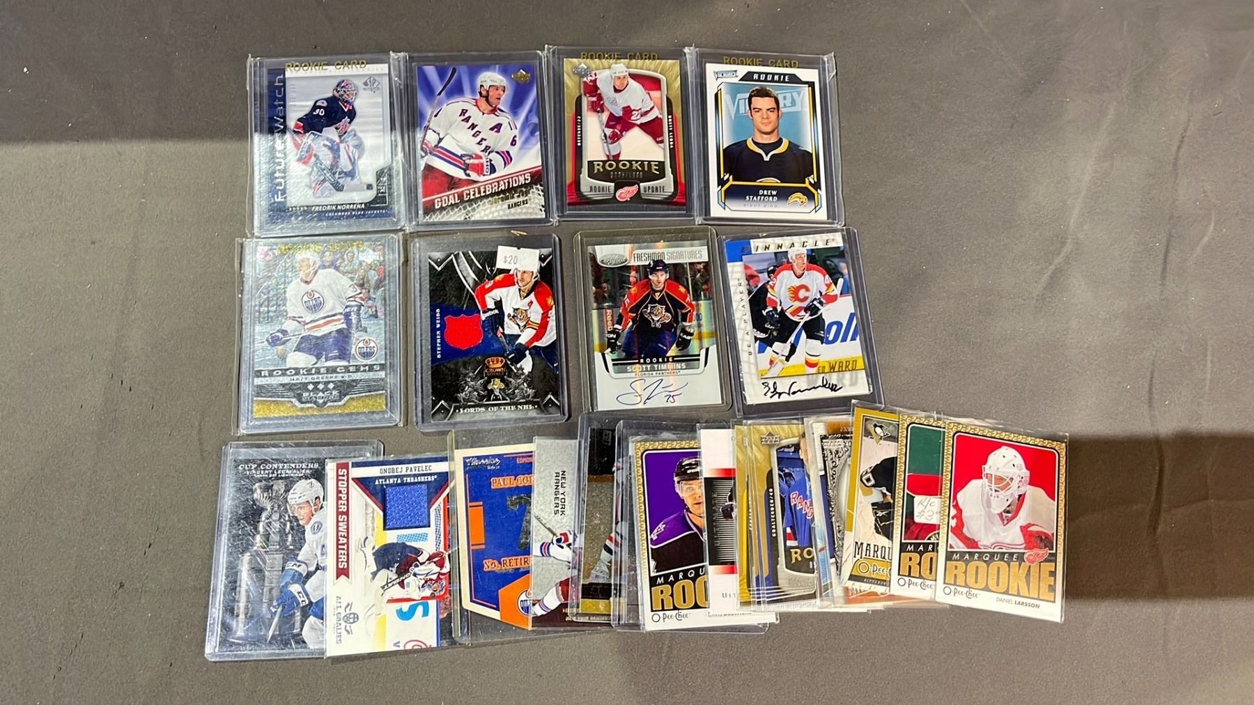 LOT OF ASSORTED ROOKIE, JERSEY, AUTOGRAPH & MORE HOCKEY CARDS INCLUDING; DREW STAFFORD, JAROMIR