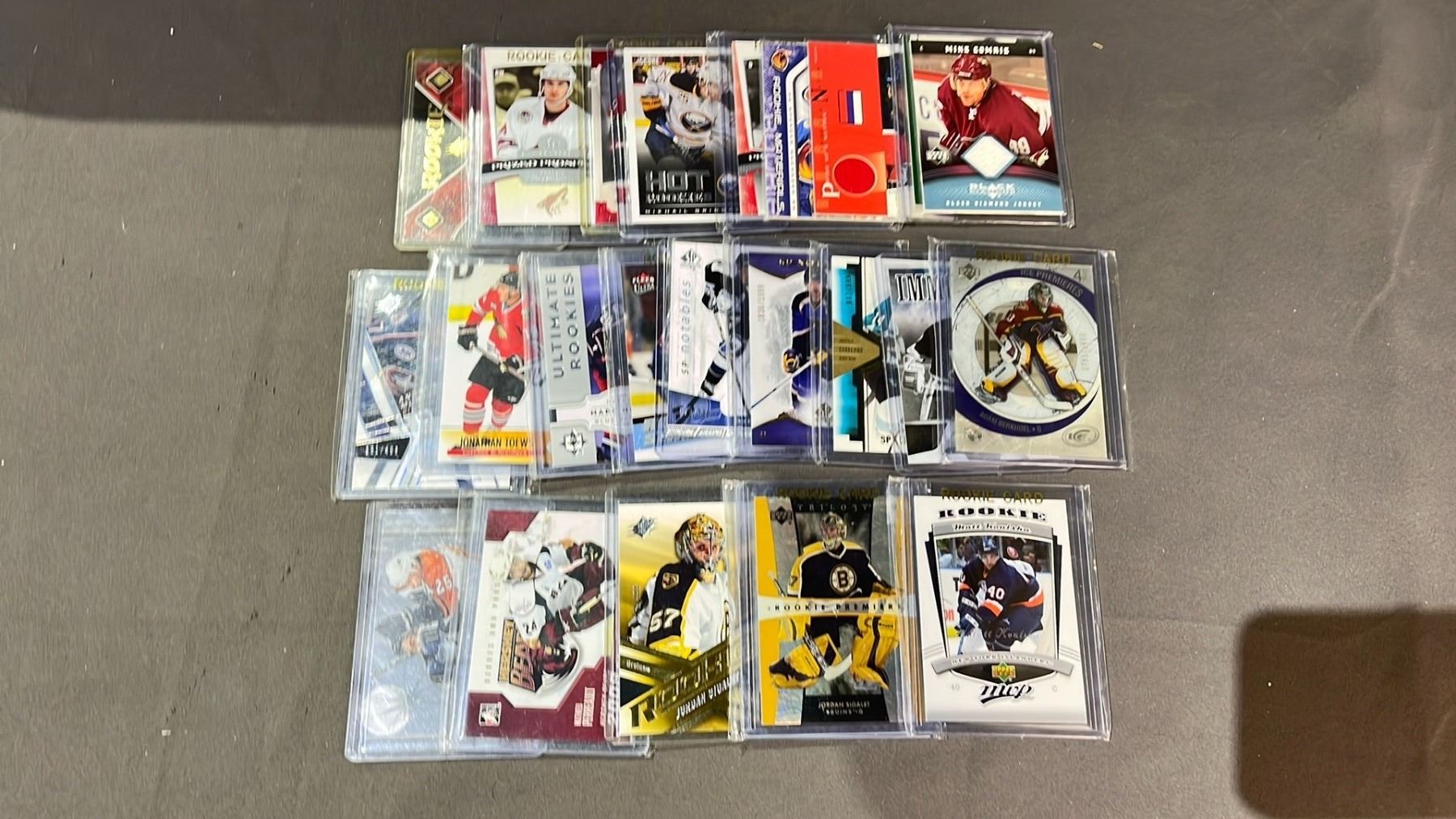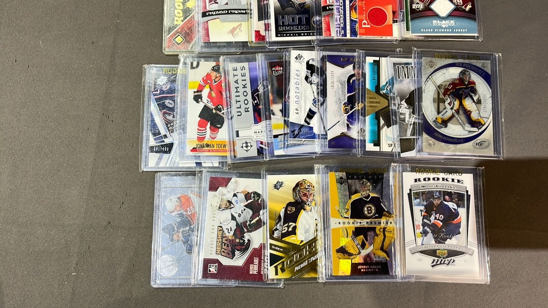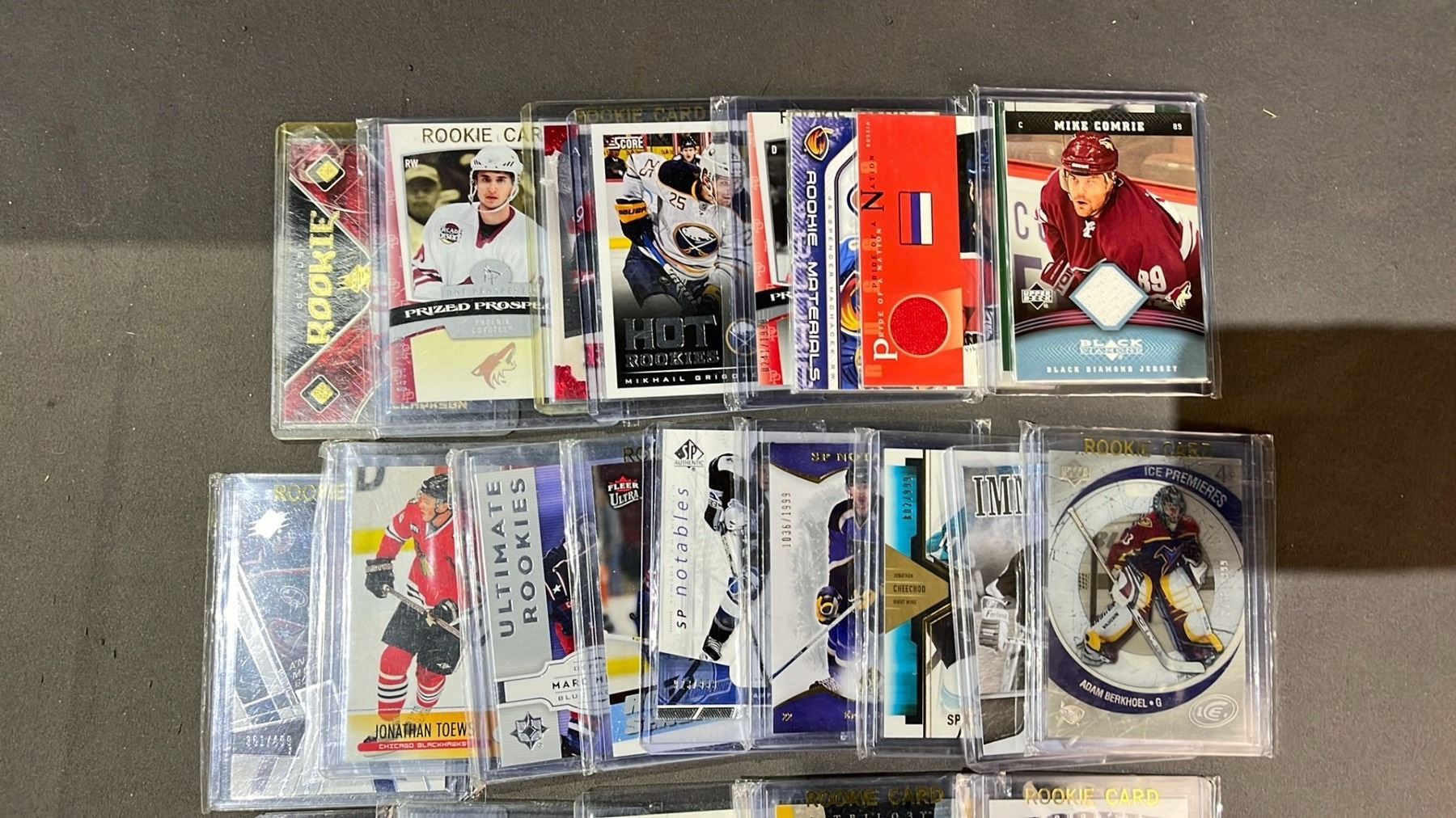 LOT OF ASSORTED ROOKIE, JERSEY & MORE HOCKEY CARDS INCLUDING; KEITH PRIMEAU, MIKE COMRIE, ALEX BROOKS & MORE