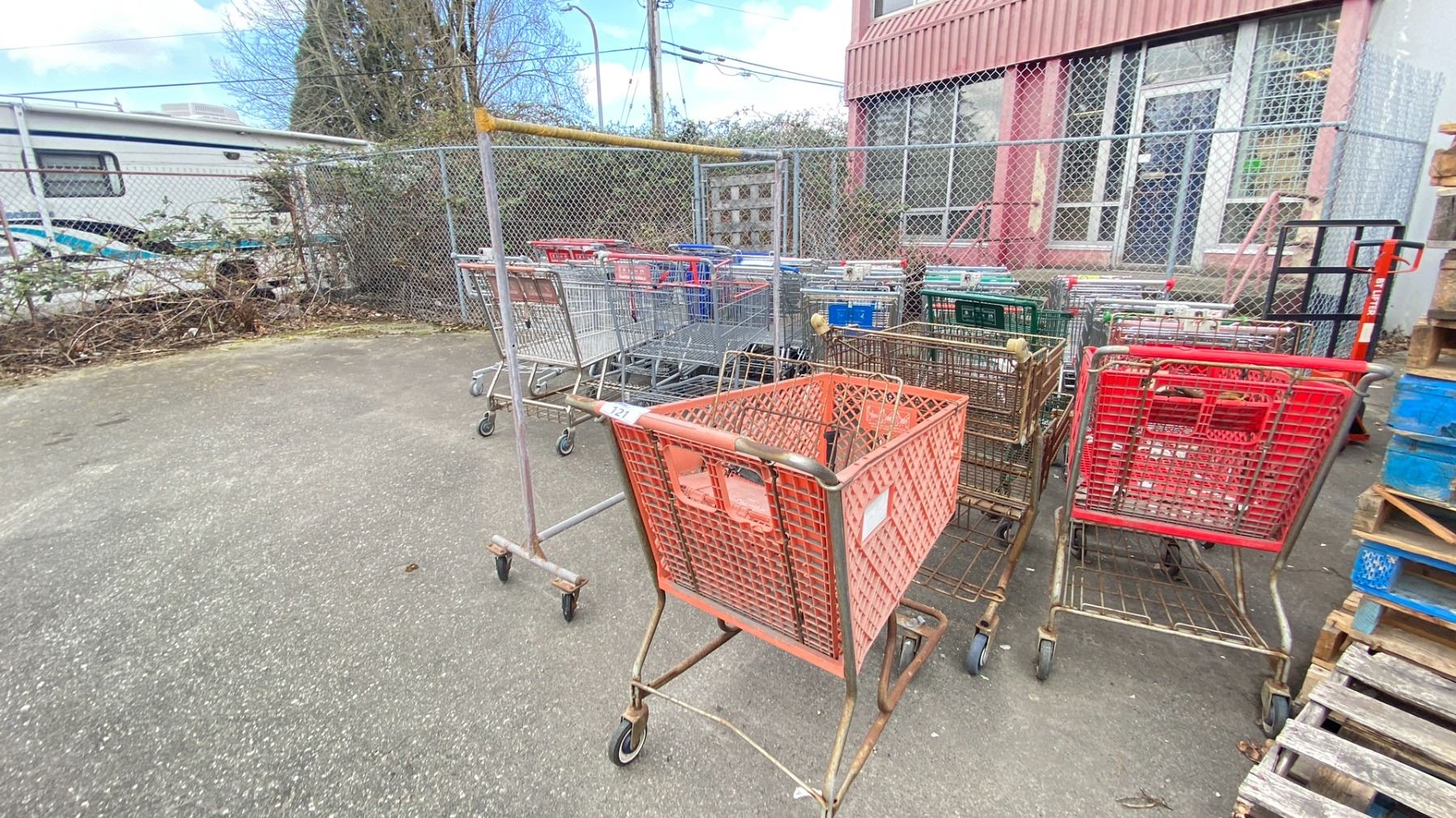 LOT OF ASSORTED SHOPPING CARTS & CLOTHING RACK