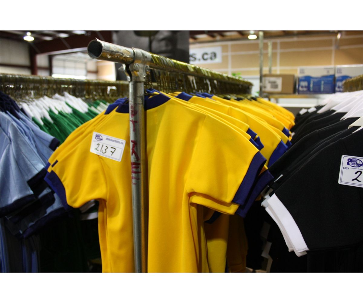 LOT OF ASSORTED SOCCER TEAM JERSEYS (RACK NOT INCLUDED)