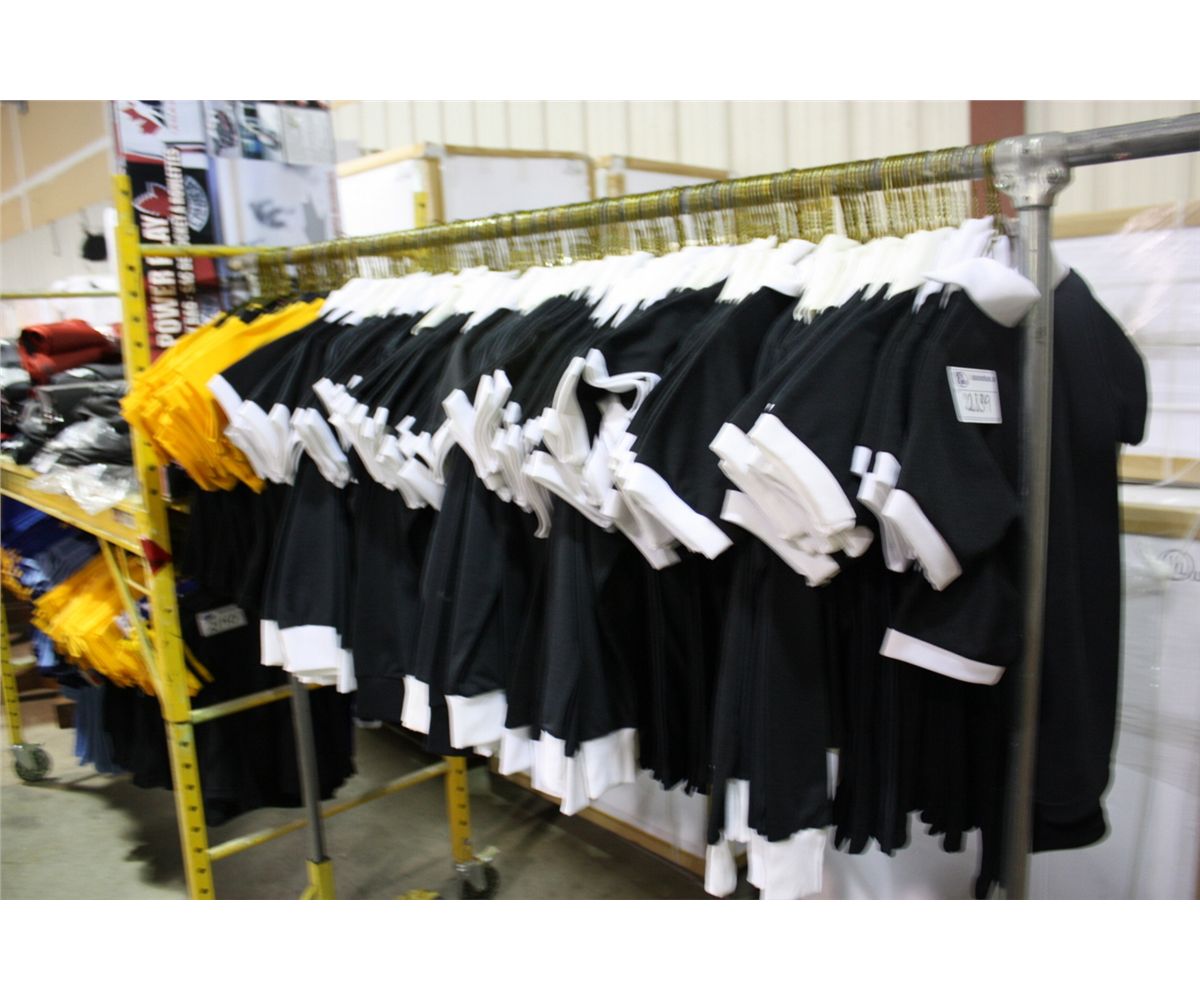 LOT OF ASSORTED SOCCER TEAM JERSEYS (RACK NOT INCLUDED)