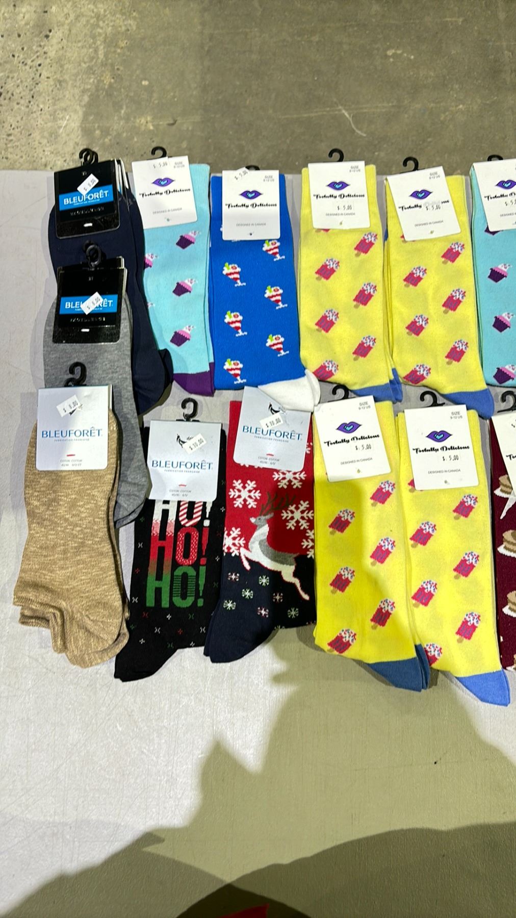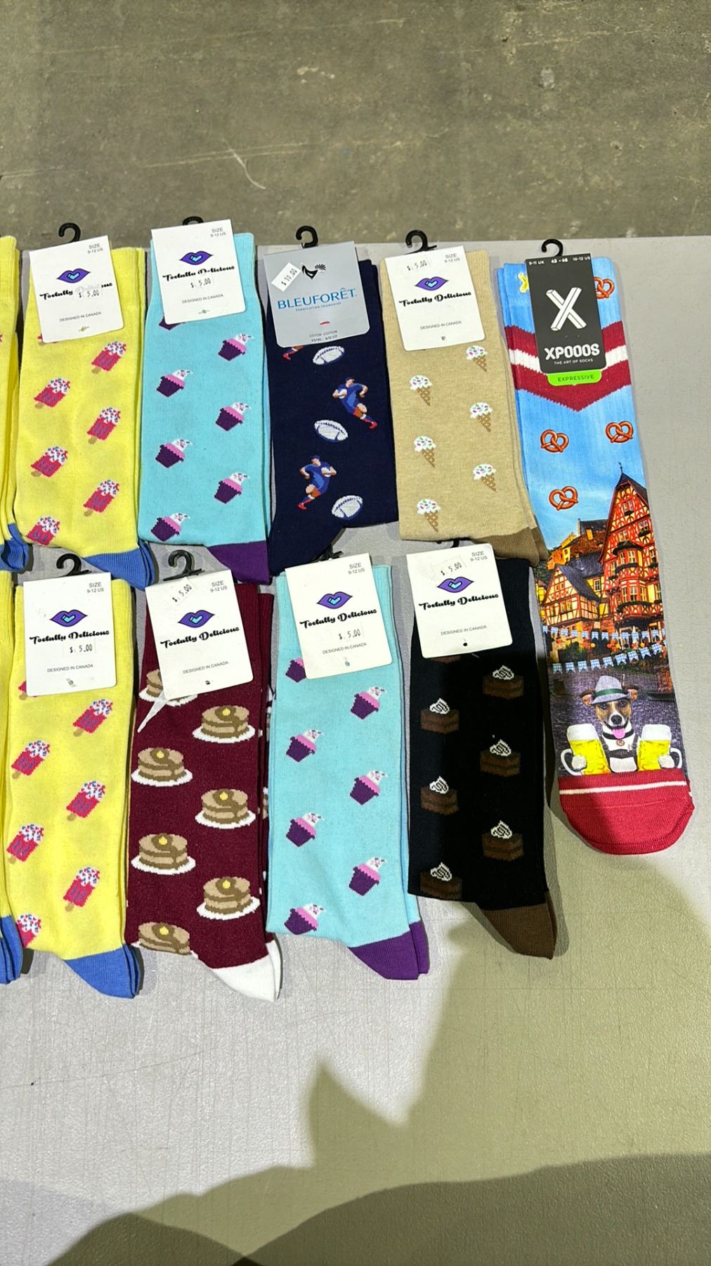 LOT OF ASSORTED SOCKS BRANDS INCLUDING; TOTALLY DELICIOUS, AND XPOOOS AND BLEUFORET