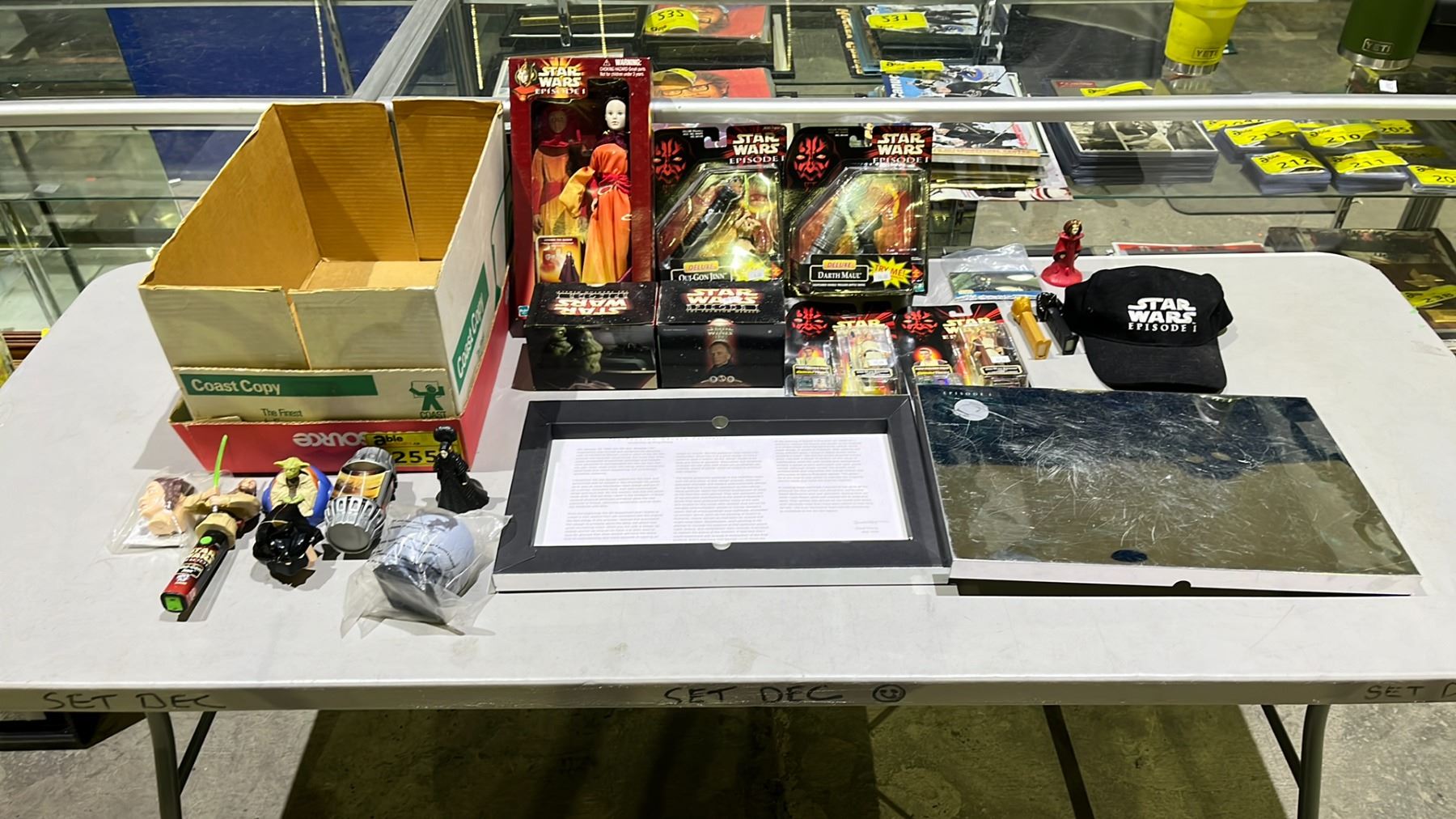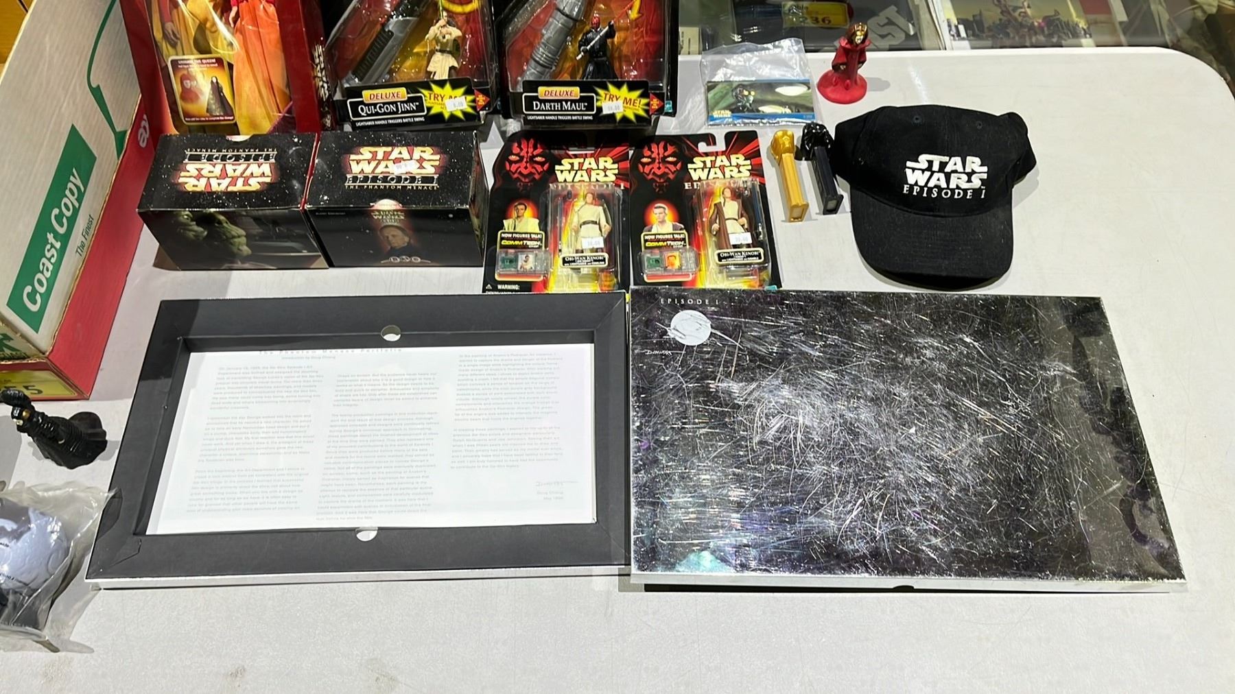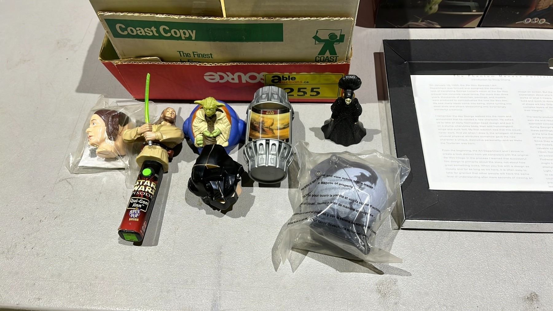 LOT OF ASSORTED STAR WARS COLLECTIBLES INCLUDING; PUZZLE CUBE, FIGURES, SPIN-POP & MORE