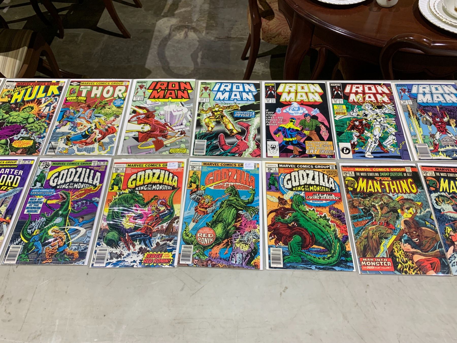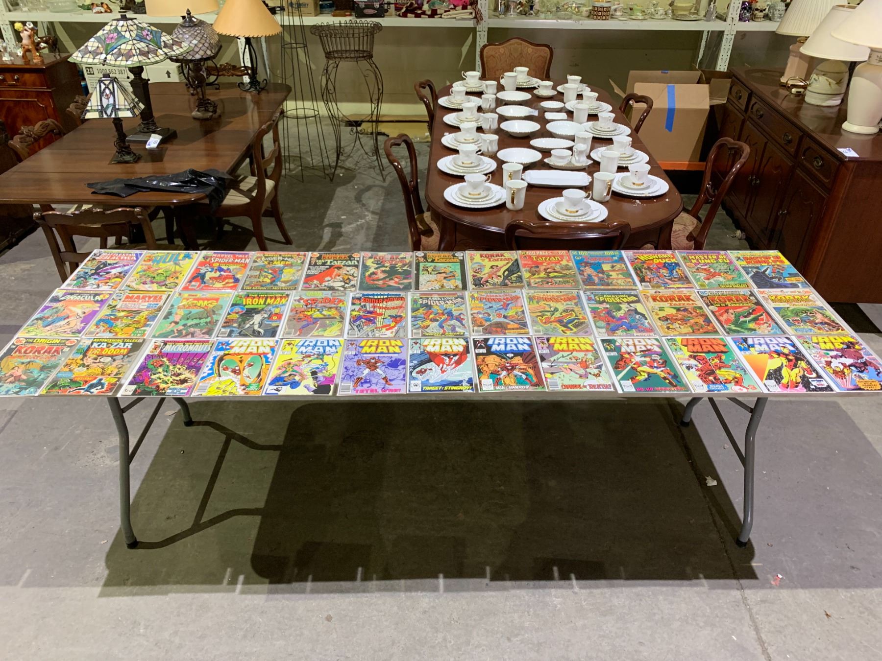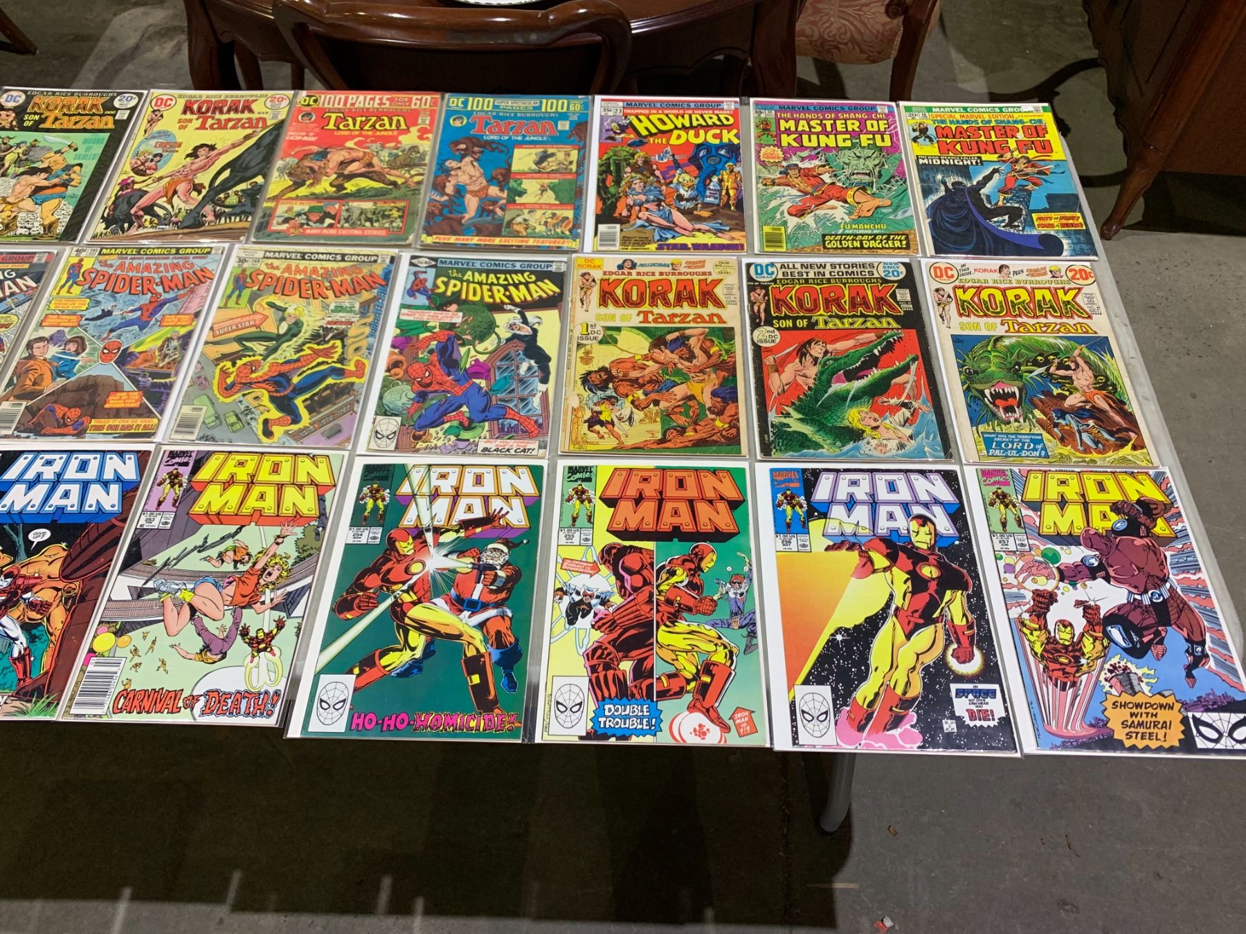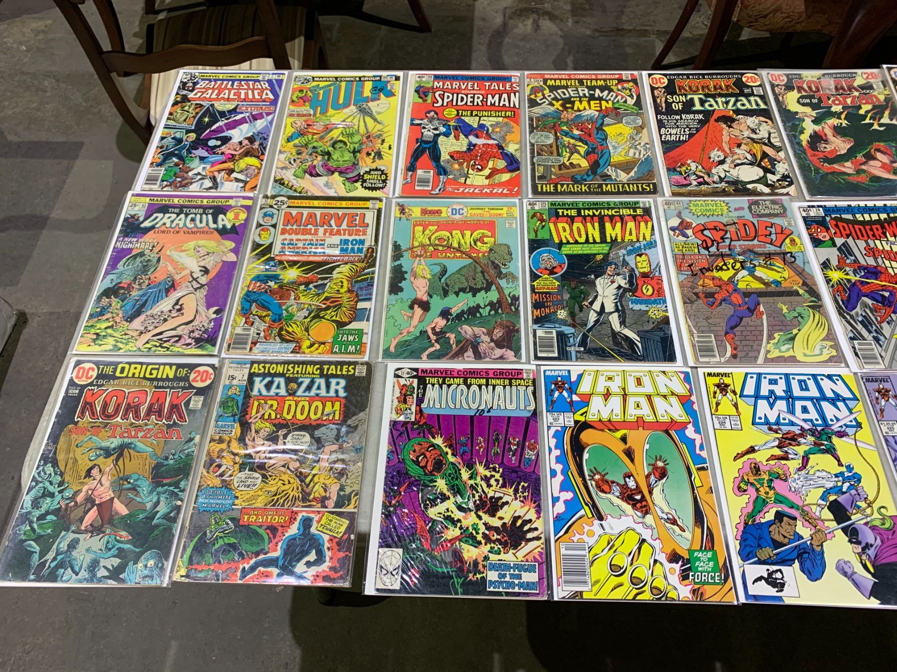 LOT OF ASSORTED VINTAGE COMIC BOOKS INCLUDING; BATTLESTAR GALACTICA, THE AMAZING SPIDER-MAN, IRON MAN & MORE
