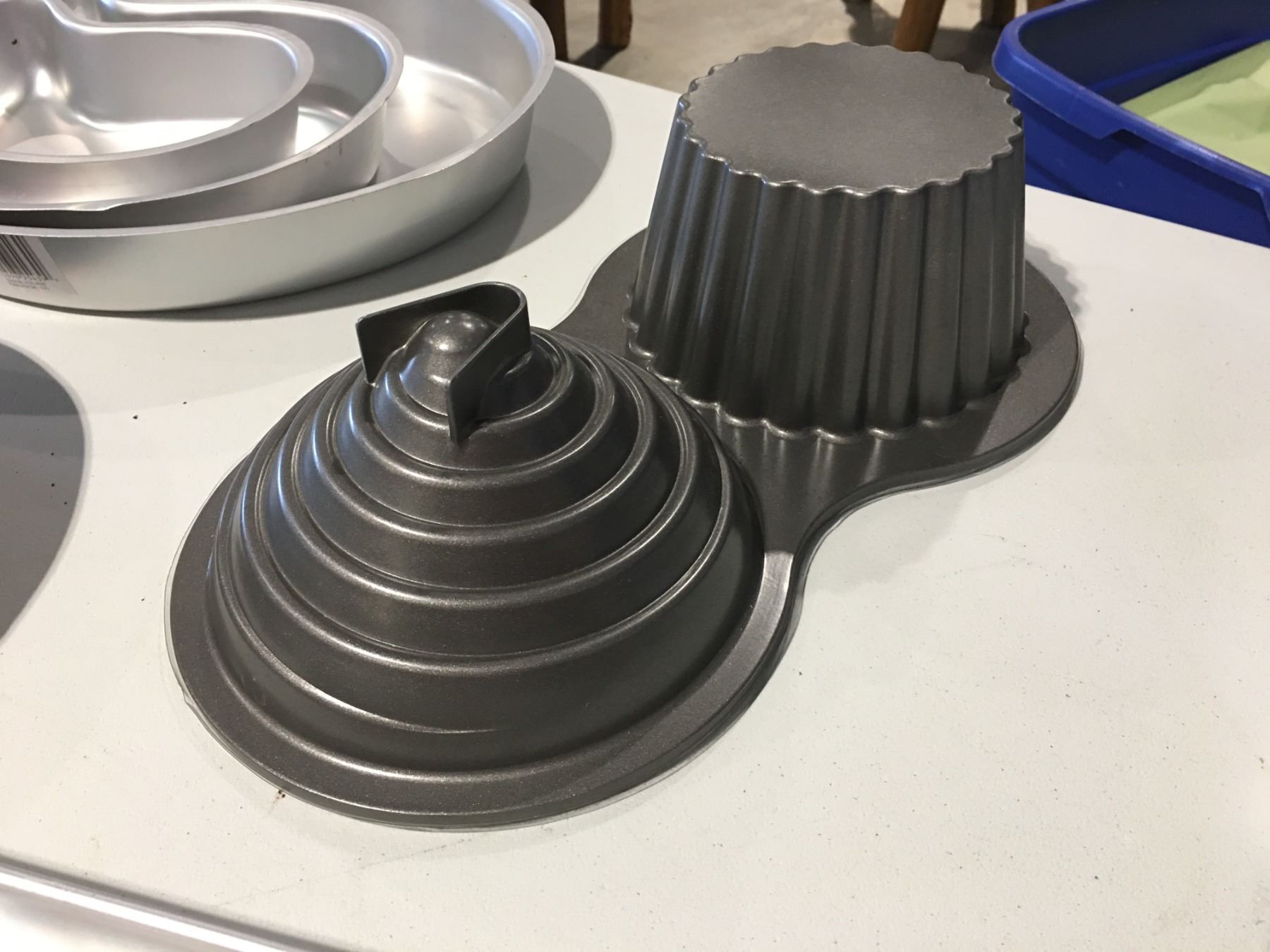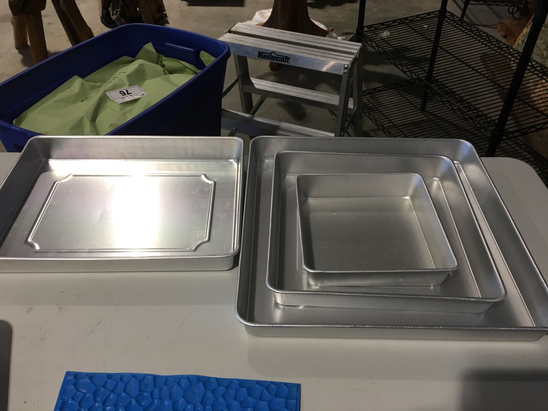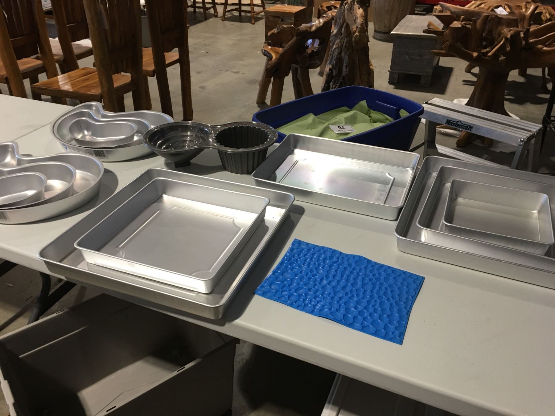 LOT OF ASSTD BAKE WARE INCLUDING - 2 X 3 PCE SET OF WILTON 3-TIER PAISLEY PAN SET 9"/12.5" & 16", SET OF SQUARE PANS 8", 12", 16", PLUS 11" X 15, 12" X 12", 16" X 16" PANS & SILICONE MOLDING PANEL & JUMBO CUPCAKE CAKE MOLD