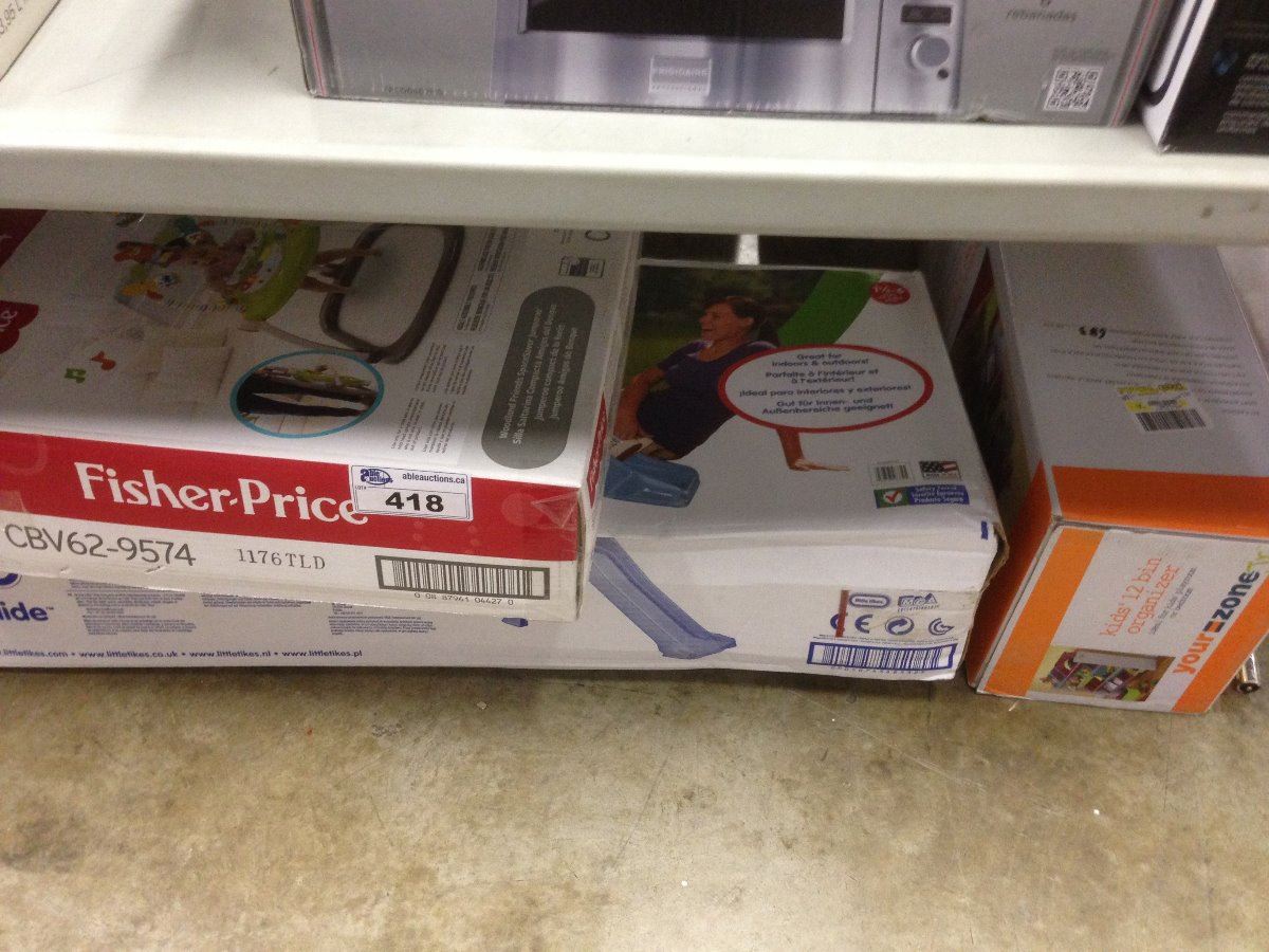 LOT OF BABY TOYS INCLUDING JUMPEROO, FIRST SLIDE AND A 12 BIN ORGANIZER