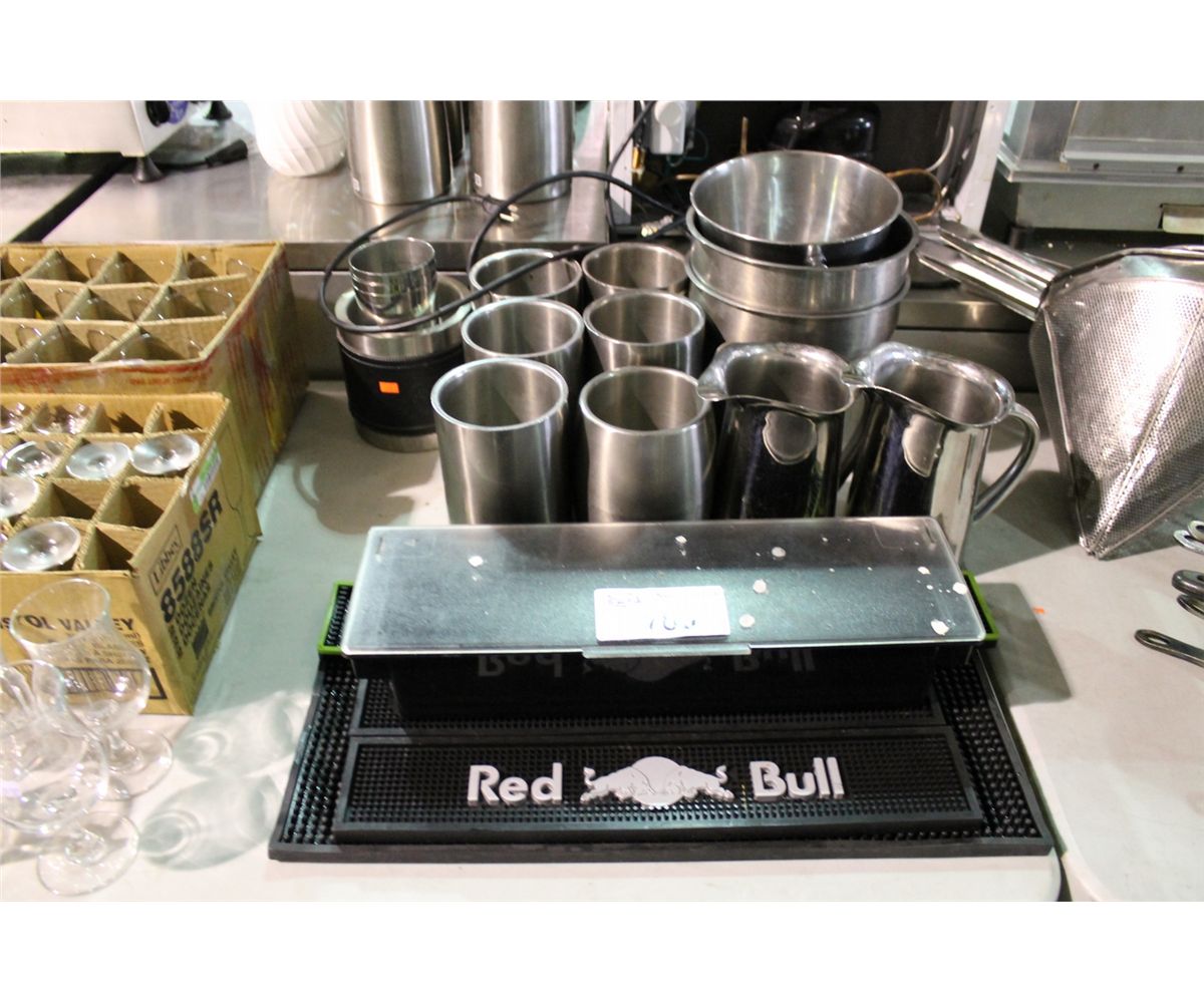 LOT OF BAR MATS AND BOTTLE CHILLERS