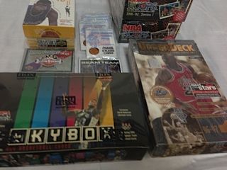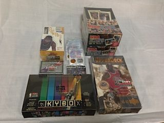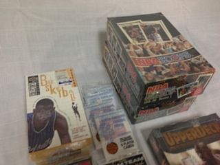 LOT OF BASKETBALL COLLECTABLES EVERYTHING IN FACTORY SEALED CONTAINERS INC.: 96/97 UPPER DECK COLLECTORS' CHOICE SET, 2 NBA HOOPS 91/92 FACTORY PACKS, U.D. 96/97 FACTORY BOX, '92 SKYBOX PACK, ASST. OTHER ITEMS.
