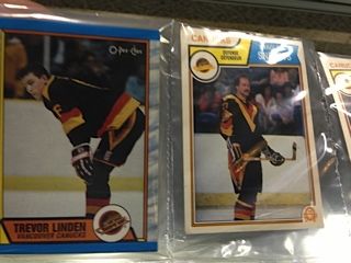 LOT OF CANUCK GREATS HOCKEY CARDS INCLUDING 18 TREVOR LINDEN O-PEE-CHEE ROOKIE CARDS, JOHN GARETT, HAROLD SNEPSTS, STAN SMYL, WILLIAMS & BURE'S