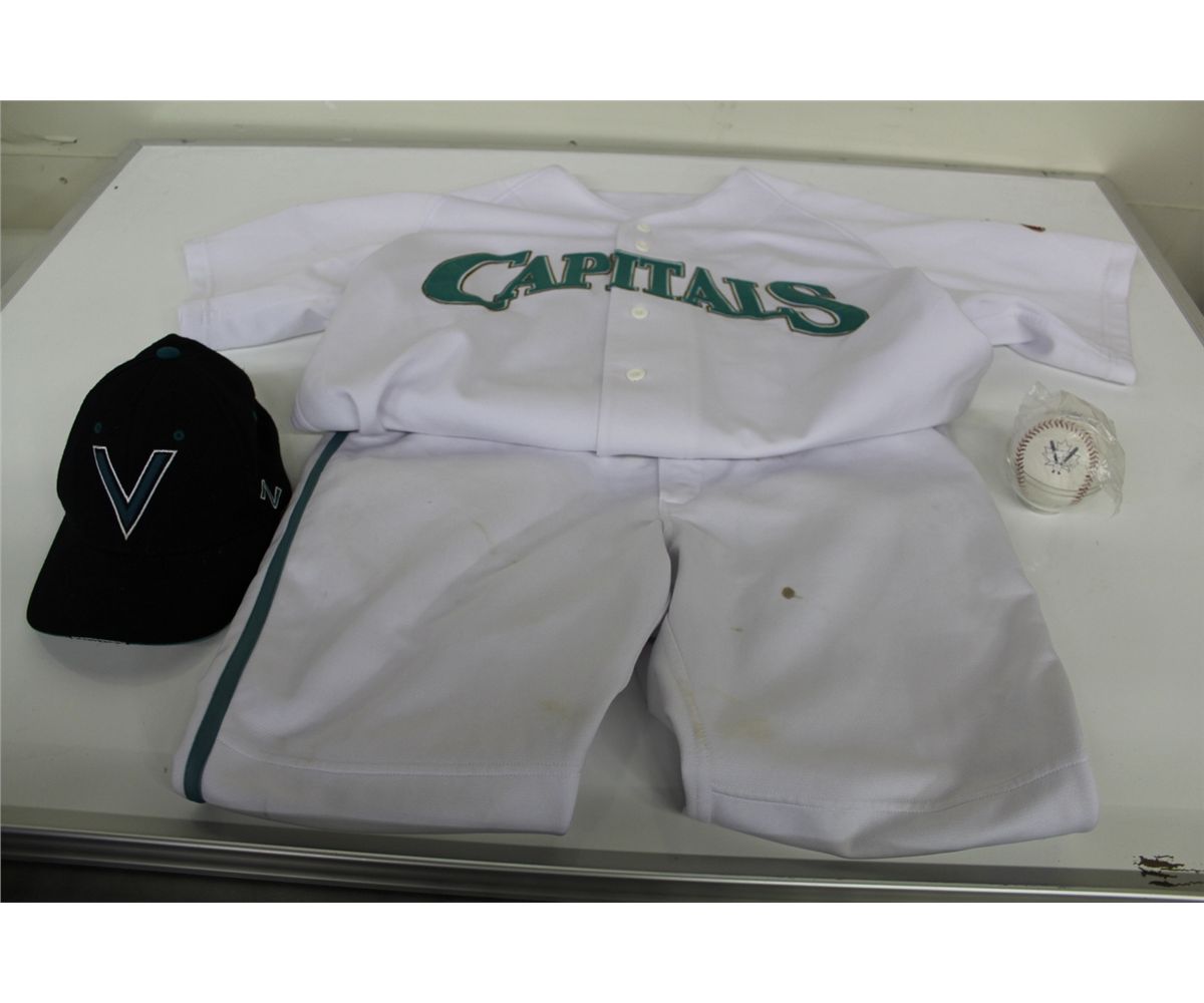 LOT OF CBL VICTORIA CAPITALS GAME USED JERSEY, HAT AND PANTS AND BASEBALL