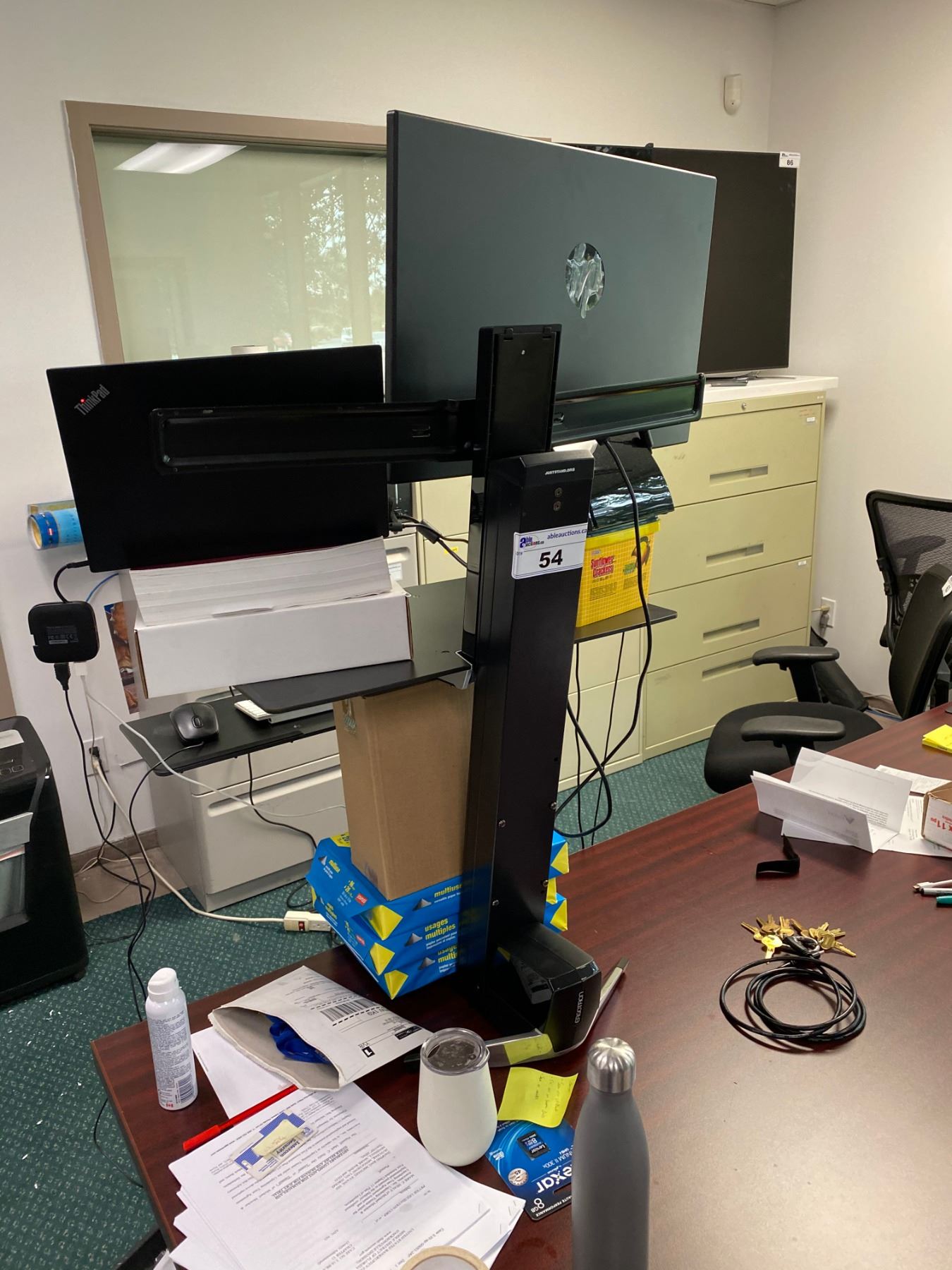 LOT OF COMPUTER EQUIPMENT INC. ERGOTRON TABLE TOP STANDING DESK AND HP 27" MONITOR