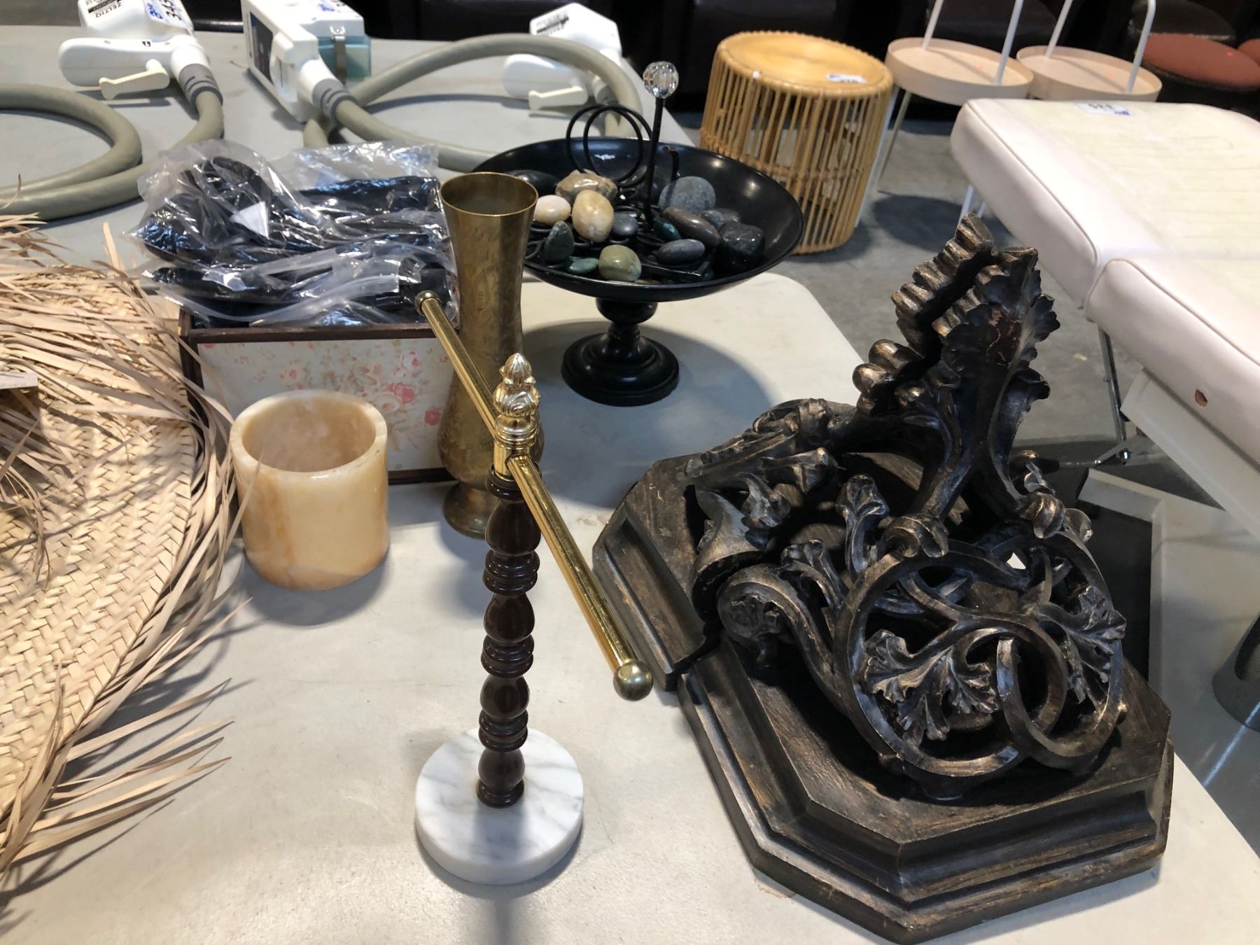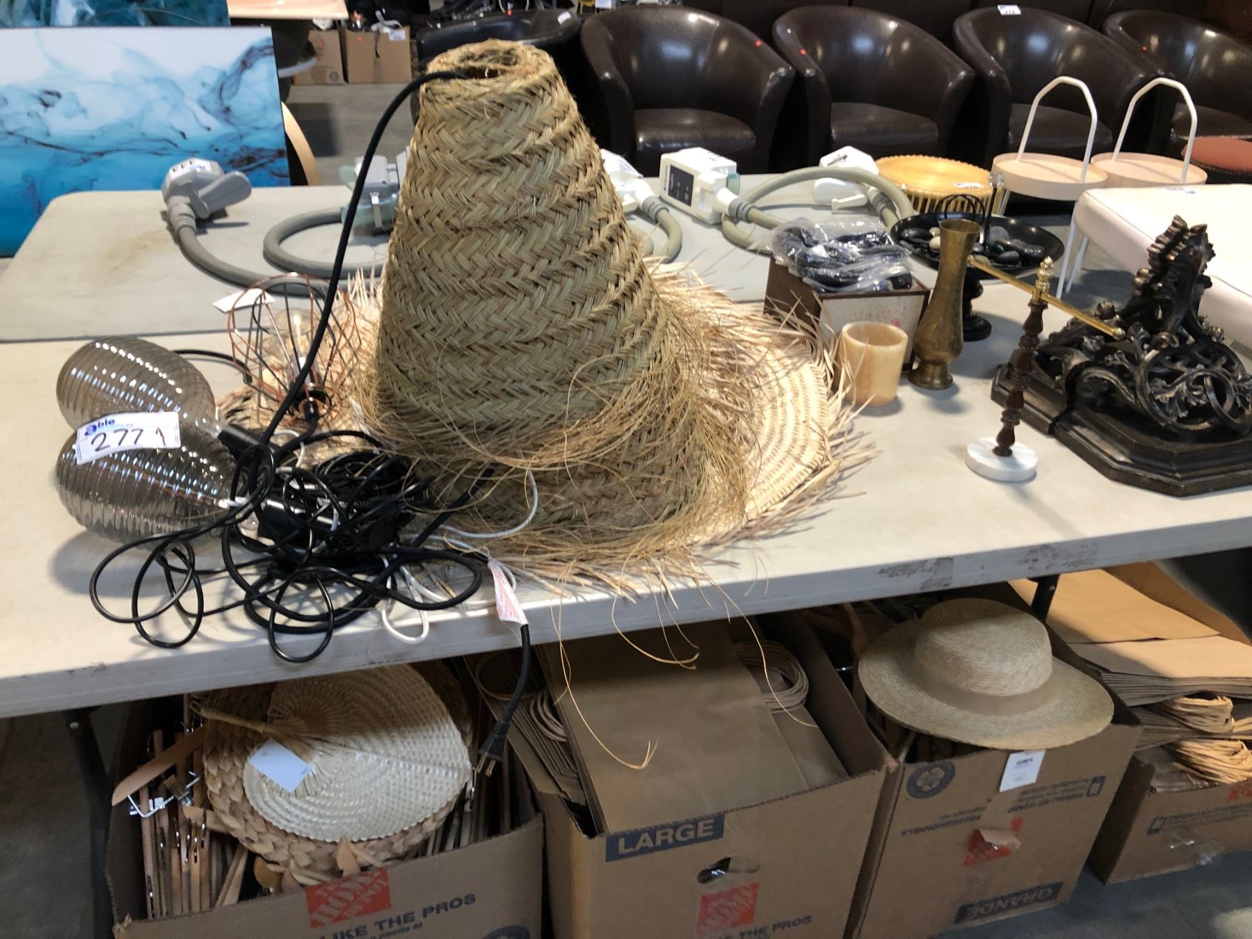 LOT OF DECOR, CLOTHES HANGERS AND PAPER BAGS