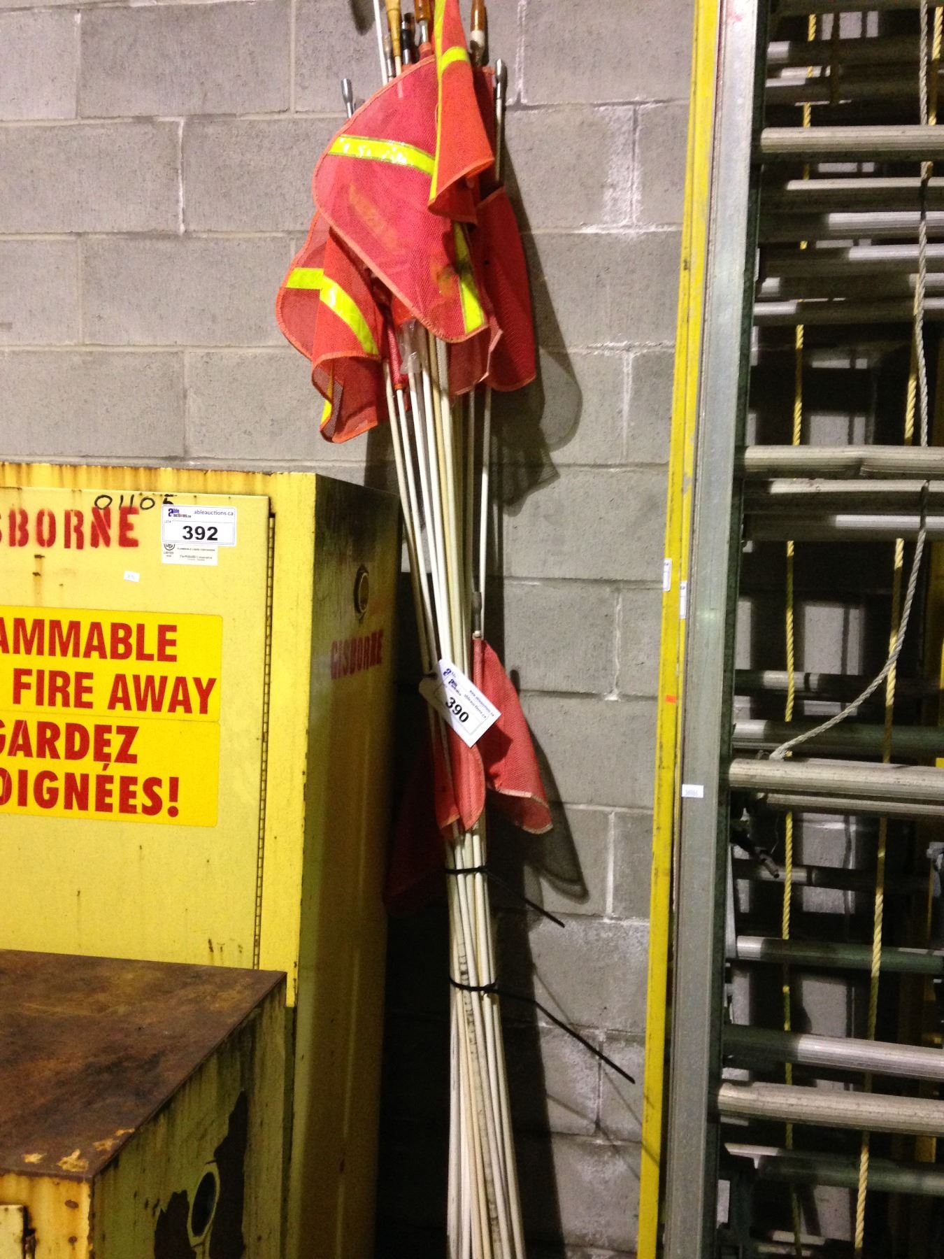 LOT OF EQUIPMENT FLAGS & ROLL OF METAL BANDING