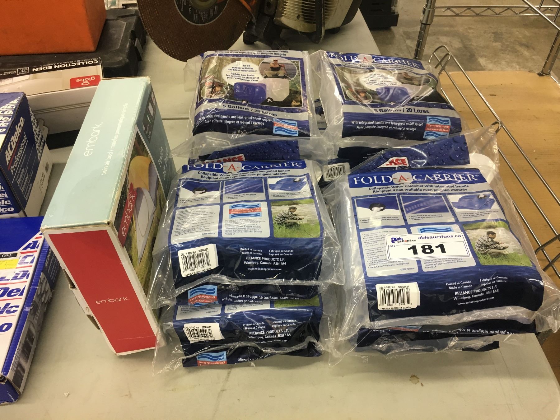 LOT OF FOLD-A-CARRIER COLLAPSIBLE WATER CARRIERS AND TWIN AIR BED